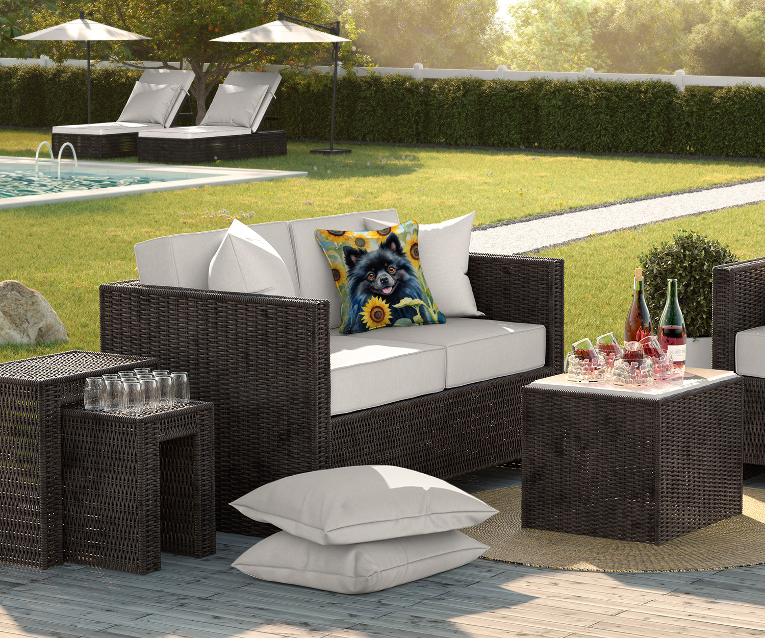 Decorate your space with our Pomeranian artwork on a Pillow. Bring a bit of Summer into your home with a Summer Pillow. Revitalize your outdoor or indoor living space with Caroline's Treasures 18x18 Fabric Decorative Pillow. With a generously sized dimension of approximately 18 inches by 18 inches, this pillow makes a comfortable and aesthetic addition to any seating area. Made from a unique, water-resistant material developed by Caroline's Treasures, the pillow sham is 100% polyester fabric that's durable and ready to weather any condition. Its vibrant, full-color artwork will not fade over time as it is dyed with color-fast dyes. Whether you place it on your patio furniture, porch, veranda, or indoor couch, its soft canvas fabric ensures a cozy experience. The pillow is handcrafted in the United States, featuring a sham created from three pieces of fabric and a polyester insert for enduring shape and overstuffed comfort. Despite being robustly built to endure the outdoors, it is as soft and snug as your favorite indoor cushions. Please note, as all our pillows are handmade, sizes may vary slightly, adding to the charm of this unique decorative item.