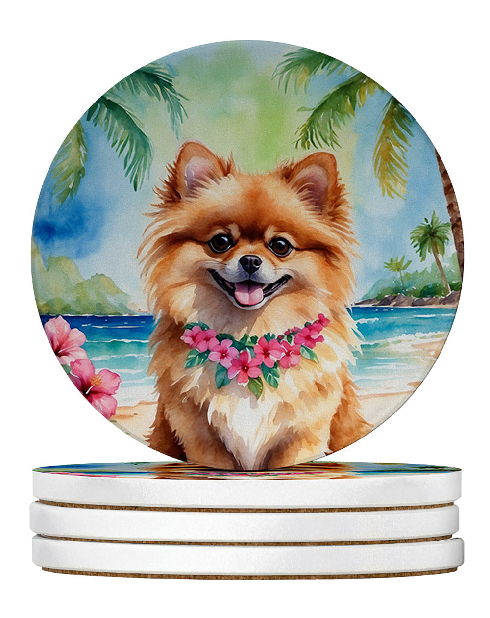 Large Sandstone Coasters Pack of 4 featuring breed specific Pomeranian artwork. Introducing Caroline's Treasures Large Sandstone Coasters Pack of 4, the perfect addition to your home decor. Each coaster measures nearly 4 inches and is made from absorbent sandstone with a cork backing. Designed and printed in the United States, these coasters feature artwork from Caroline's Treasures' talented artists. Protect your countertops and tables from hot and cold drink condensation with these absorbent coasters. They efficiently absorb moisture, ensuring your surfaces stay dry and clean. Choose from a wide range of designs to update and enhance your decor or give them as a thoughtful gift for any occasion. Cleaning is a breeze—simply wipe the coaster with a damp towel to remove any spills or stains. Each set comes in a brown gift box, making it ready to be wrapped for that special person in your life. These absorbent sandstone coasters also make an excellent housewarming gift, providing both practicality and style. Celebrate birthdays, Mother's Day, Father's Day, Thanksgiving, Christmas, Teacher's Appreciation Day, or simply show someone you care with these versatile and charming coasters. Caroline's Treasures Large Sandstone Coasters Pack of 4 is the perfect happy gift for any occasion.