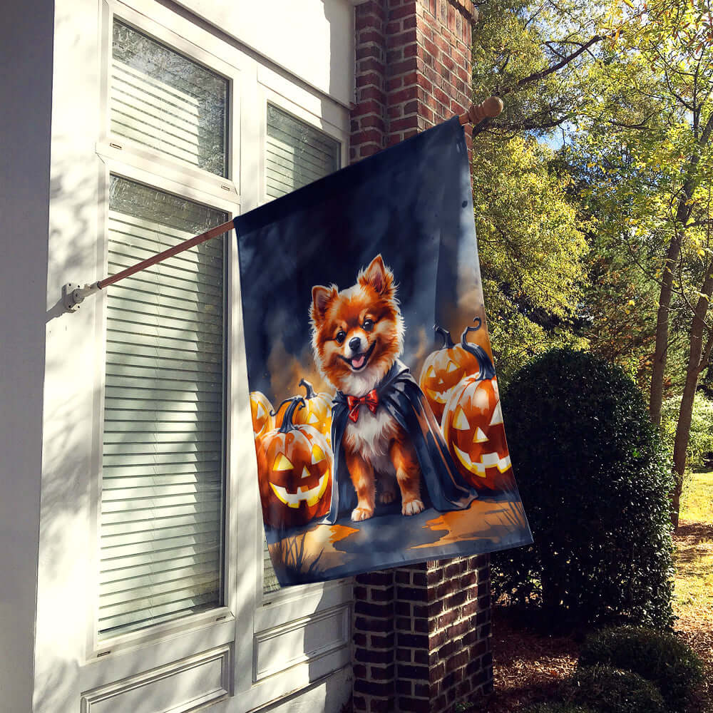 House Flag featuring breed specific Pomeranian artwork. Celebrate Halloween with this Halloween Large Flag. Presenting our Heavy Duty Polyester House Size Decorative Sleeve Pole Flag, a vibrant addition to enhance the aesthetic appeal of your home. This large decorative flag, measuring approximately 28 x 40 inches, offers ample coverage and visibility. Each flag is meticulously sewn and made individually, ensuring a unique piece that may slightly vary in size. It's a sleeve pole flag, designed to fit a standard decorative flag pole effortlessly. Please note that the flag pole and bracket are not included and should be purchased separately. What sets our flag apart is its dual-sided print. The design is mirrored on both sides of the fabric, allowing for uniform visibility regardless of the angle. Printed in full color, our flag showcases vibrant hues that truly stand out. To ensure lasting vibrancy and durability, the dyes are heat-set into the fabric. This ensures your flag remains bright and captivating through various weather conditions. Elevate the look of your home with our Heavy Duty Polyester House Size Decorative Sleeve Pole Flag!