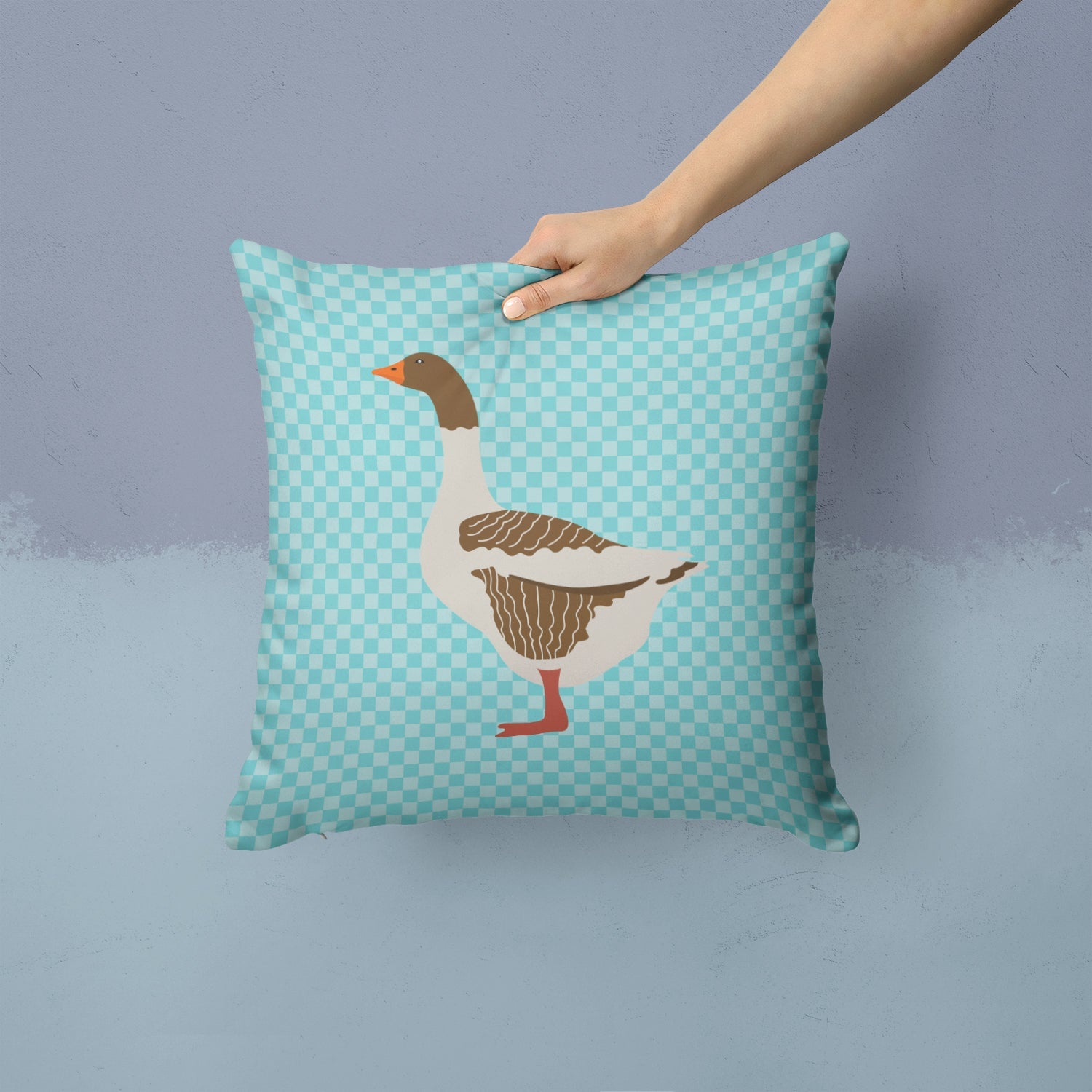Pomeranian Rogener Goose Blue Check Throw Pillow - 14x14 Decorative Pillow – Art for Your Home & Patio BB8077PW1414