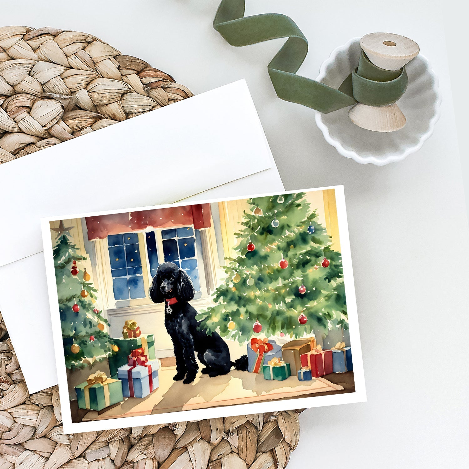 Decorate your space with our Christmas Poodle artwork on a . Celebrate special moments with Caroline's Treasures Printed Greeting Card Pack. This pack includes eight beautifully folded 5x7 cards, accompanied by eight matching white envelopes. With blank interiors, these cards provide ample space for your personalized messages and heartfelt holiday greetings. Each card features captivating full-color artwork, meticulously printed in our facility on high-quality 80 lb cover stock or 216 GSM. The super smooth finish of the white cards enhances the visual impact of the artwork, creating a truly stunning presentation. Designed by our talented in-house artists or licensed artists, the artwork on these cards showcases their creativity and attention to detail. From vibrant illustrations to captivating designs, each card tells its own unique story. Whether it's for birthdays, anniversaries, holidays, or any special occasion, Caroline's Treasures Greeting Card Pack is the perfect way to convey your heartfelt sentiments. Share joy, love, and warm wishes with these exquisite cards and make every moment unforgettable.
