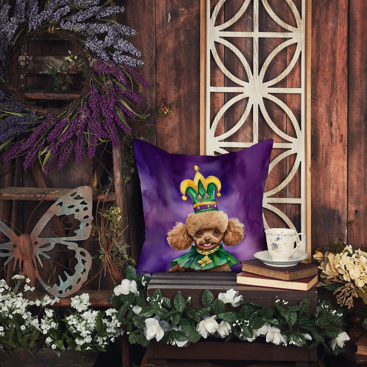 Throw Pillow featuring breed specific Poodle artwork. Celebrate Mardi Gras with this Mardi Gras Pillow. Add a touch of vibrancy and comfort to your outdoor seating with Caroline's Treasures Fabric Decorative Pillow. Measuring approximately 14 inches by 14 inches, this outdoor pillow is crafted to elevate the appeal of your patio furniture, infusing it with vivid color and artistic flair. The pillow includes a 100% Polyester Fabric sham filled with a quality pillow form to provide superior comfort. Innovatively made from our brand new material, specifically woven for its water resistance, this pillow is designed for durability. The soft canvas fabric offers versatility in use, fit for your indoor couch or your outdoor patio, porch, or veranda. The fabric is dyed with colorfast dyes built for resilience against weather conditions, ensuring the pillow retains its beauty over time. Constructed by sewing three fabric pieces to create a sham, the polyester insert is then nestled inside to form the pillow, resulting in an overstuffed pillow that maintains its shape. Both the sham and the pillow insert are proudly made in the United States. As the pillows are handcrafted, there may be minor variations in size, further enhancing their unique charm. Experience comfort in style with Caroline's Treasures Fabric Decorative Pillow.