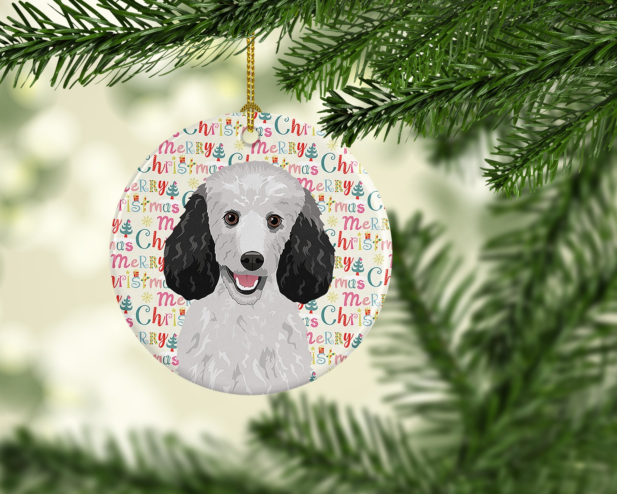 Decorate your space with our Christmas Poodle artwork on a Ornament. Add a touch of personalized charm to your Christmas tree this holiday season with our Ceramic Ornament. Measuring 2.8125 inches in diameter, this round porcelain ornament beautifully reflects your festive lights, enhancing your holiday decor. The gloss surface sets off the vibrant, full-color artwork contributed by one of our talented artists, bringing a pop of color and joy to your tree. This Ceramic Ornament doesn't stop at being merely decorative. The white back is designed for personalization. Write a heartfelt message, mark a special year, or inscribe a date with a paint pen or a permanent marker to create a treasured memento. Please ensure you allow any personalization to dry thoroughly before handling to maintain the pristine finish. Included with the ornament is a delicate gold cord for easy hanging. Made in the USA, this Ceramic Ornament makes an exceptional gift for a pet sitter, teacher, family member, or anyone you wish to share a little Christmas magic with. With its blend of style, charm, and personal touch, it's a meaningful addition to any Christmas tree.