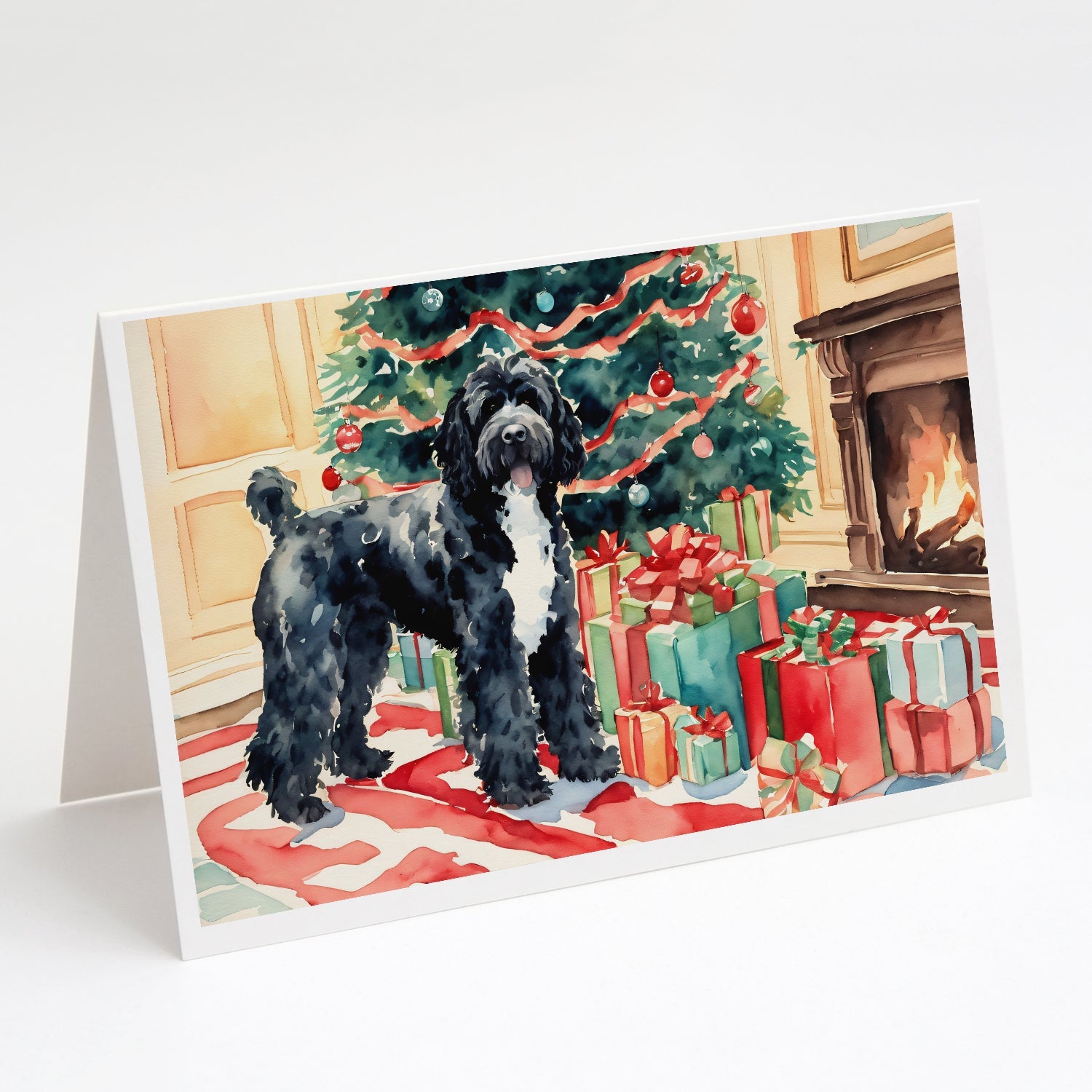 Decorate your space with our Christmas Portuguese Water Dog artwork on a . Celebrate special moments with Caroline's Treasures Printed Greeting Card Pack. This pack includes eight beautifully folded 5x7 cards, accompanied by eight matching white envelopes. With blank interiors, these cards provide ample space for your personalized messages and heartfelt holiday greetings. Each card features captivating full-color artwork, meticulously printed in our facility on high-quality 80 lb cover stock or 216 GSM. The super smooth finish of the white cards enhances the visual impact of the artwork, creating a truly stunning presentation. Designed by our talented in-house artists or licensed artists, the artwork on these cards showcases their creativity and attention to detail. From vibrant illustrations to captivating designs, each card tells its own unique story. Whether it's for birthdays, anniversaries, holidays, or any special occasion, Caroline's Treasures Greeting Card Pack is the perfect way to convey your heartfelt sentiments. Share joy, love, and warm wishes with these exquisite cards and make every moment unforgettable.