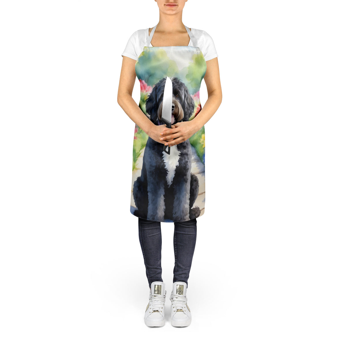 Portuguese Water Dog Spring Path Apron – Artist-Designed Kitchen, BBQ & Craft Apron