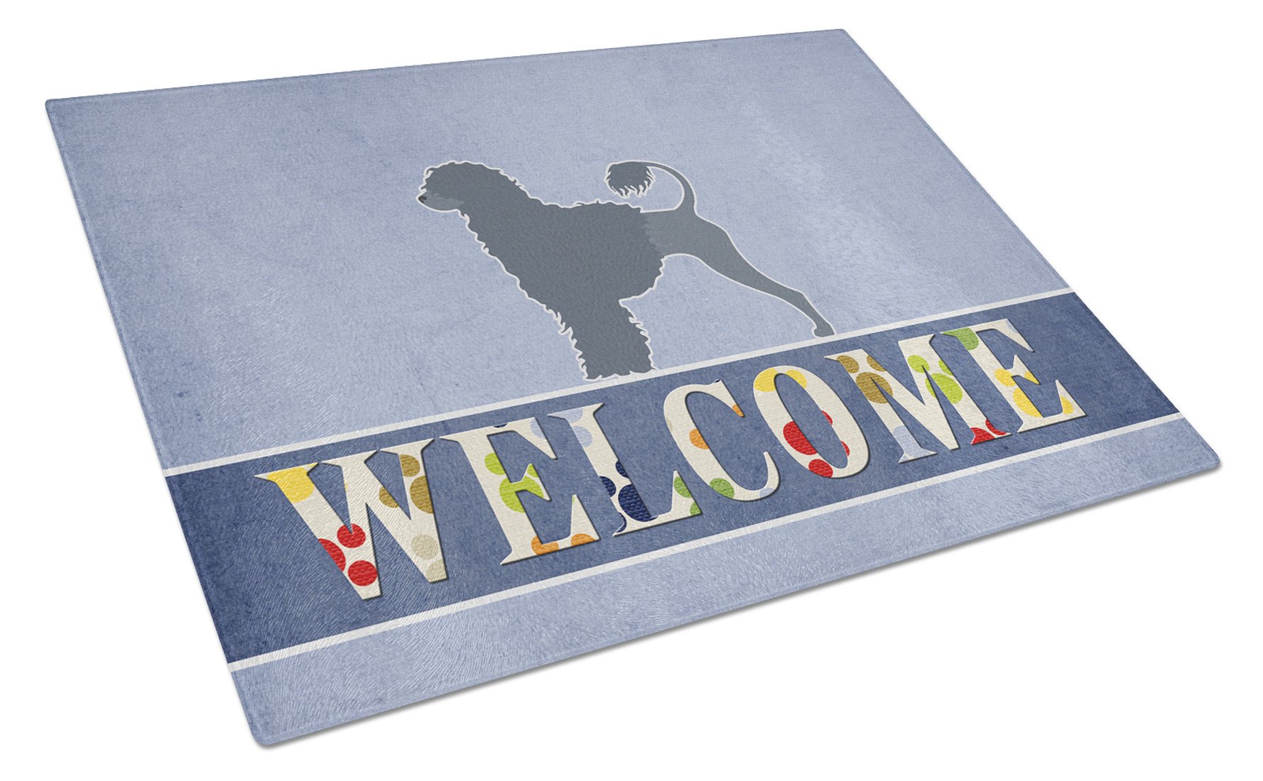 Decorate your space with our Portuguese Water Dog artwork on a Cutting Board. Introduce your kitchen to the vibrant, large Decorative Glass Cutting Board from Caroline's Treasures. Crafted from resilient tempered glass, this board is not only a utilitarian necessity but also a colorful art piece. With its generous dimensions of 15 inches in height and 12 inches in length, it offers ample space for all your cutting needs. Every piece showcases captivating artwork from distinguished artists, bringing an aesthetic edge to your kitchen. Beyond its attractive design, this cutting board ensures your countertop stays pristine and unscathed, owing to its heat-resistant properties. Engineered with user convenience in mind, it features non-skid feet for stability, and rounded corners for additional safety. Its robust construction renders it virtually unbreakable, guaranteeing longevity. The board comes with protective feet bumpers, maintaining its position during use. This product is recommended to be hand washed only. Proudly printed and assembled in the United States, this cutting board exemplifies superior craftsmanship. With Caroline's Treasures' Decorative Glass Cutting Board, you're investing in a blend of functionality and artistic flair.