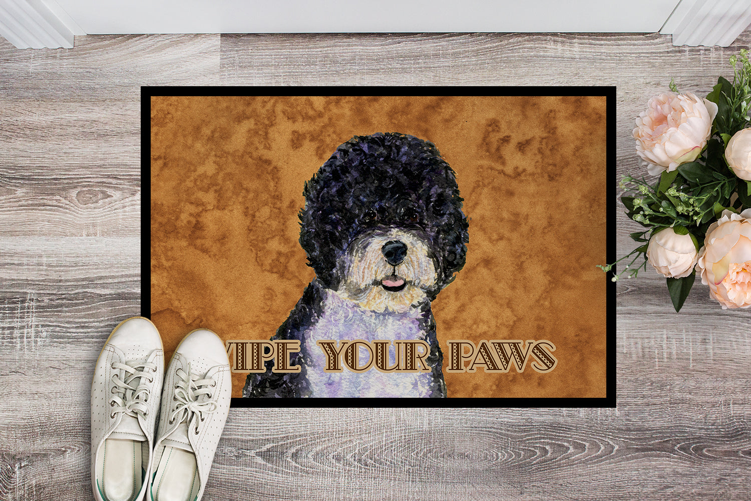 Decorate your space with our Irish Setter artwork on a Doormat. Welcome your guests in style with our Artwork Door Mat, designed to withstand almost any weather condition. This mat, measuring approximately 24 by 36 inches, is held together by durable black binding tape. Its top layer, composed of polyester felt, is dyed with the eye-catching image you see on the mat. A few layers below provide the mat with stability, while its rubber bottom is stamped to help prevent slipping and ensures safety. Our mat works wonderfully as both an indoor or outdoor door mat. For cleaning, simply hose it off with water or use a power washer - no need for any cleaner that produces suds. Avoid scrubbing with a brush, instead, opt for the vacuum on floor setting. Designed manufactured and printed in the USA, this mat is a perfect addition to your porch, outdoor kitchen, entryway, or any indoor space. Its unique design makes it a charming decorative rug that greets your guests and adds a stylish touch to your home decor.