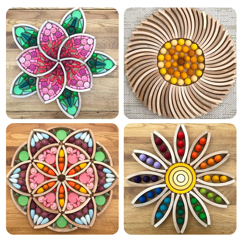 A set comes with 28 pieces in a wooden storage tray. Each block is handcrafted and made with beech wood. These natural wooden arches can be used to stimulate fine motor skills, concentration, perseverance, creativity, and imagination.