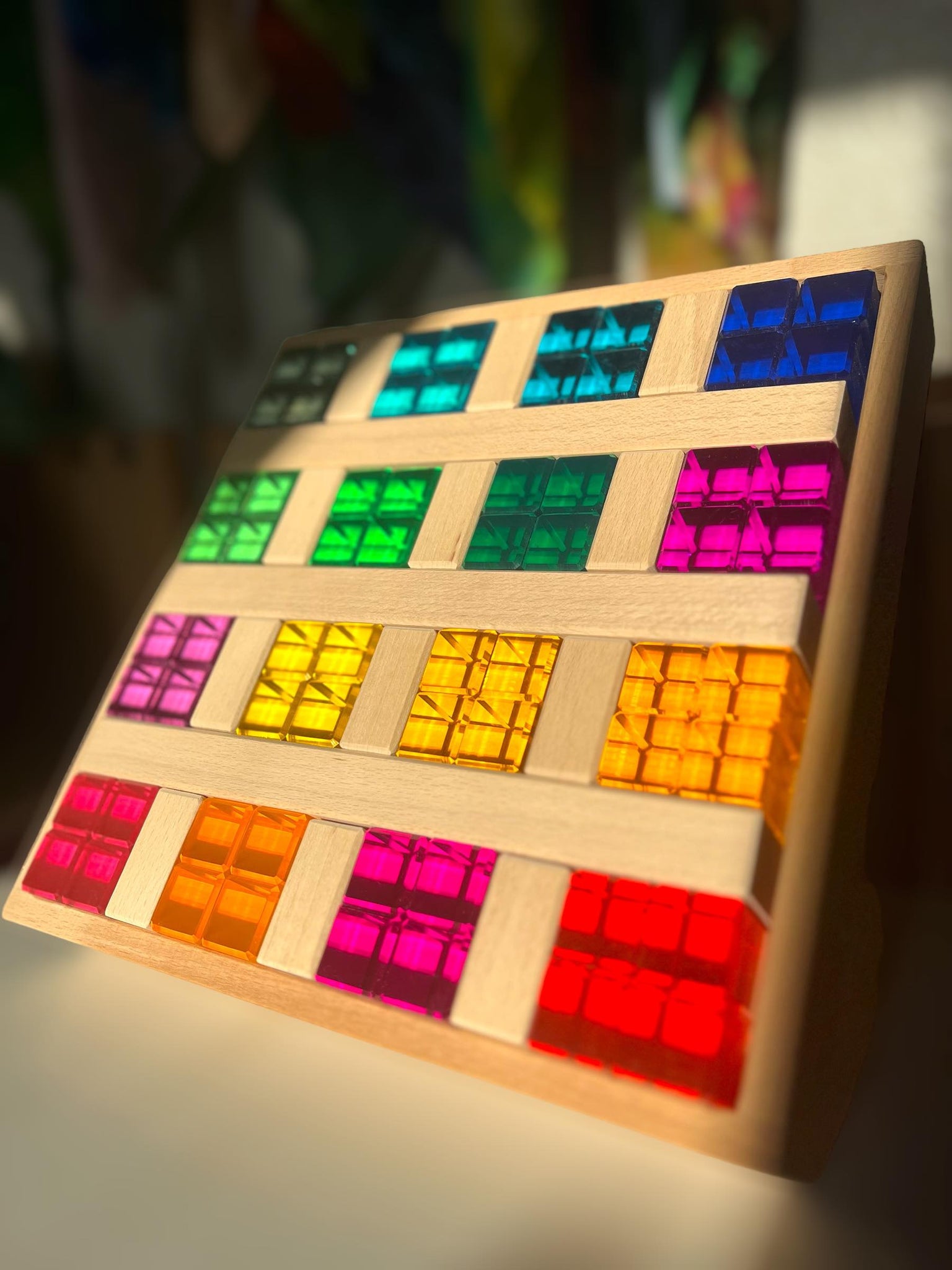 **Pre-order (Ships in 2-3 Weeks)**64 Pcs Rainbow Stones & 6 Interlocking Slats Set with Storage Tray