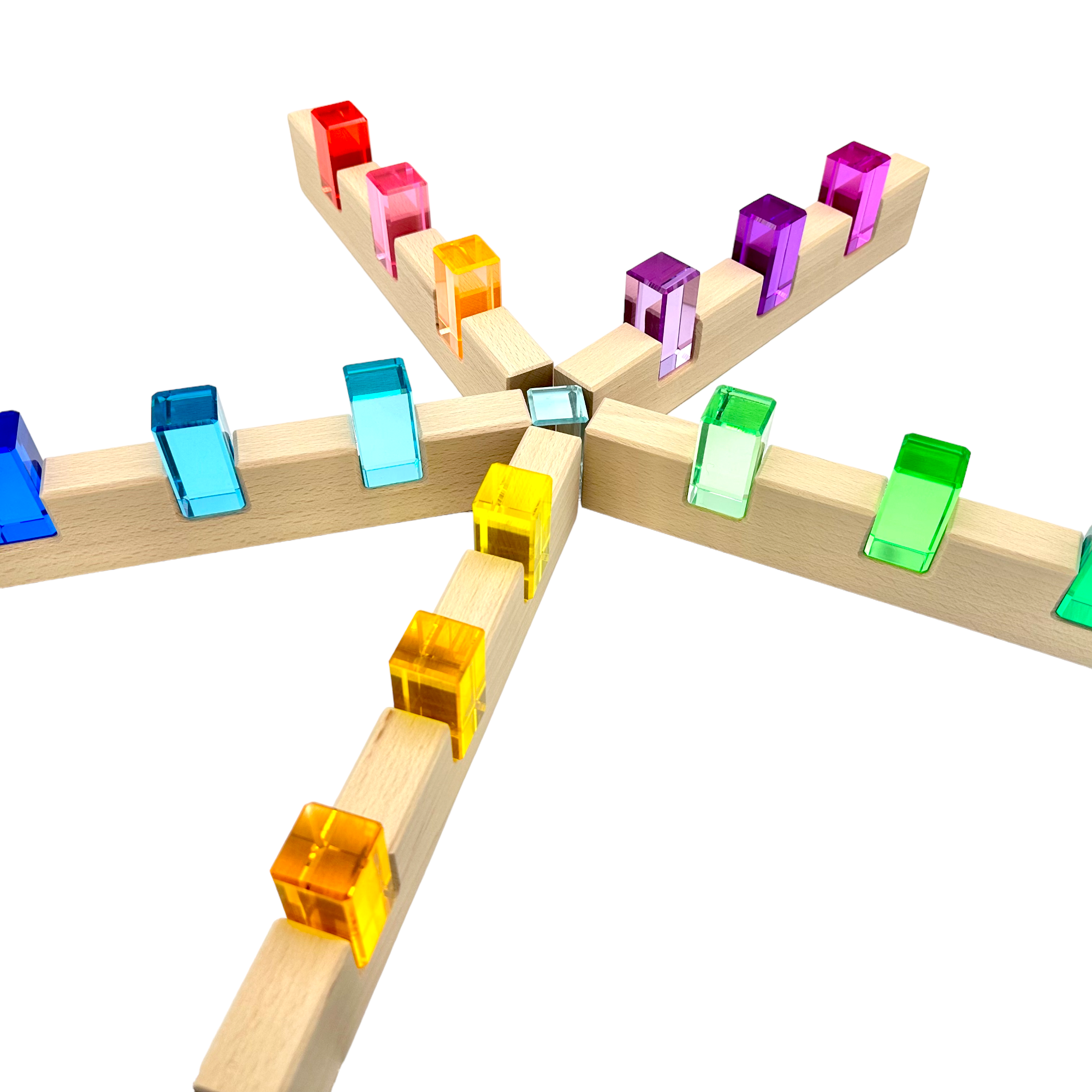 Full Set of 64 Rainbow Stones & 6 Interlocking Slats in a Wooden Box