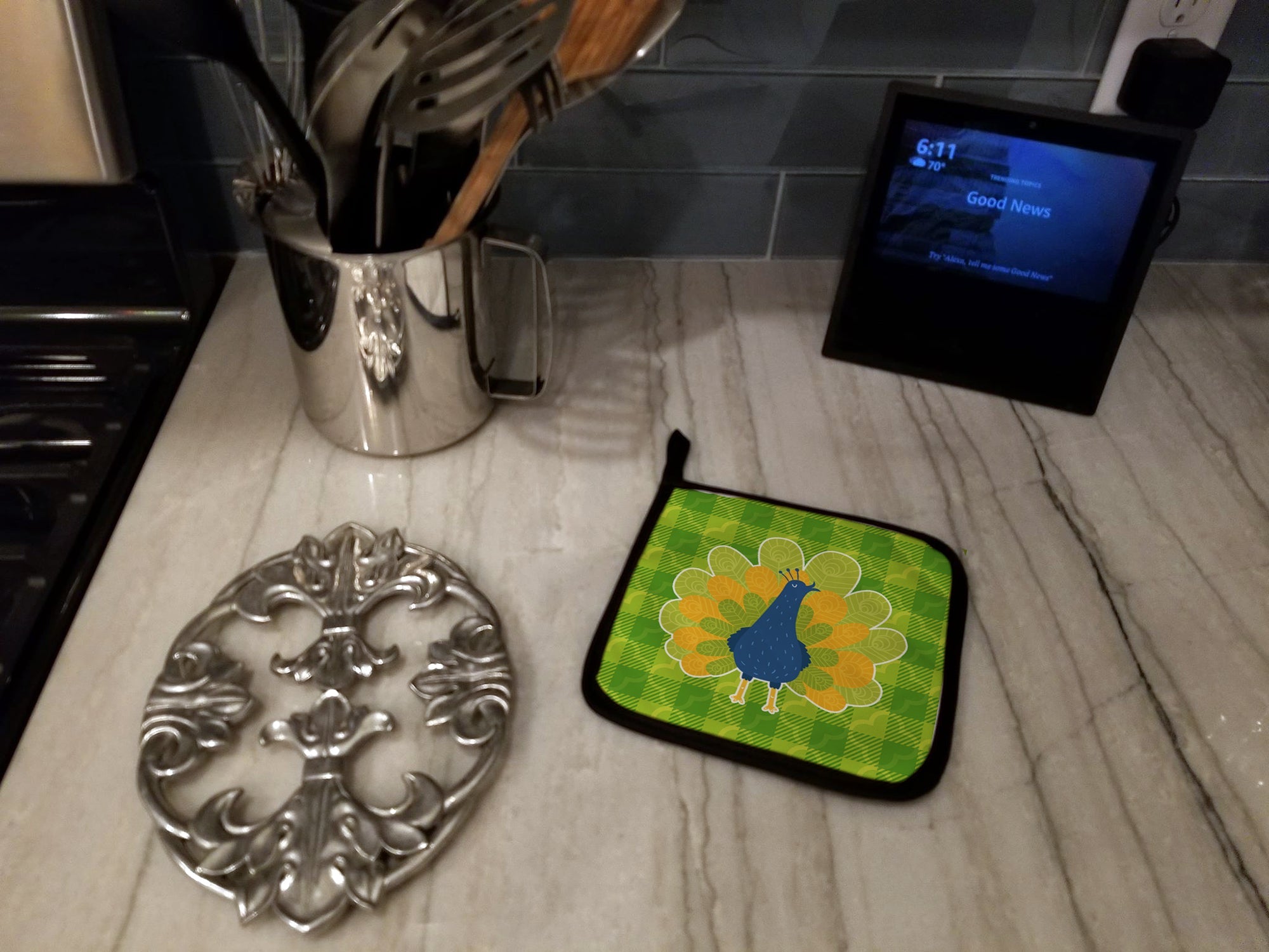 Pretty Peacock Pot Holders - Set of 2 - Heat-Resistant Kitchen Essentials BB6770PTHD
