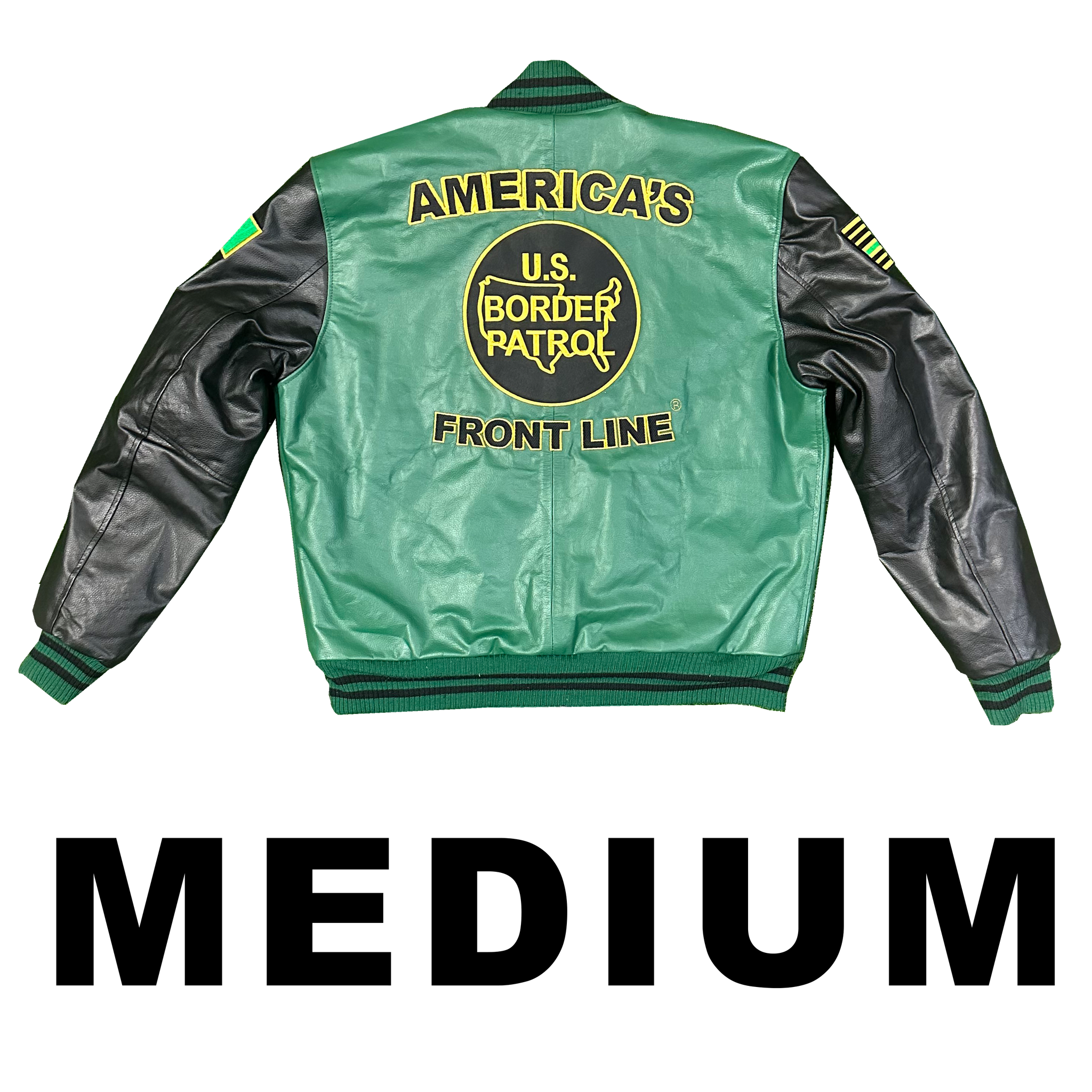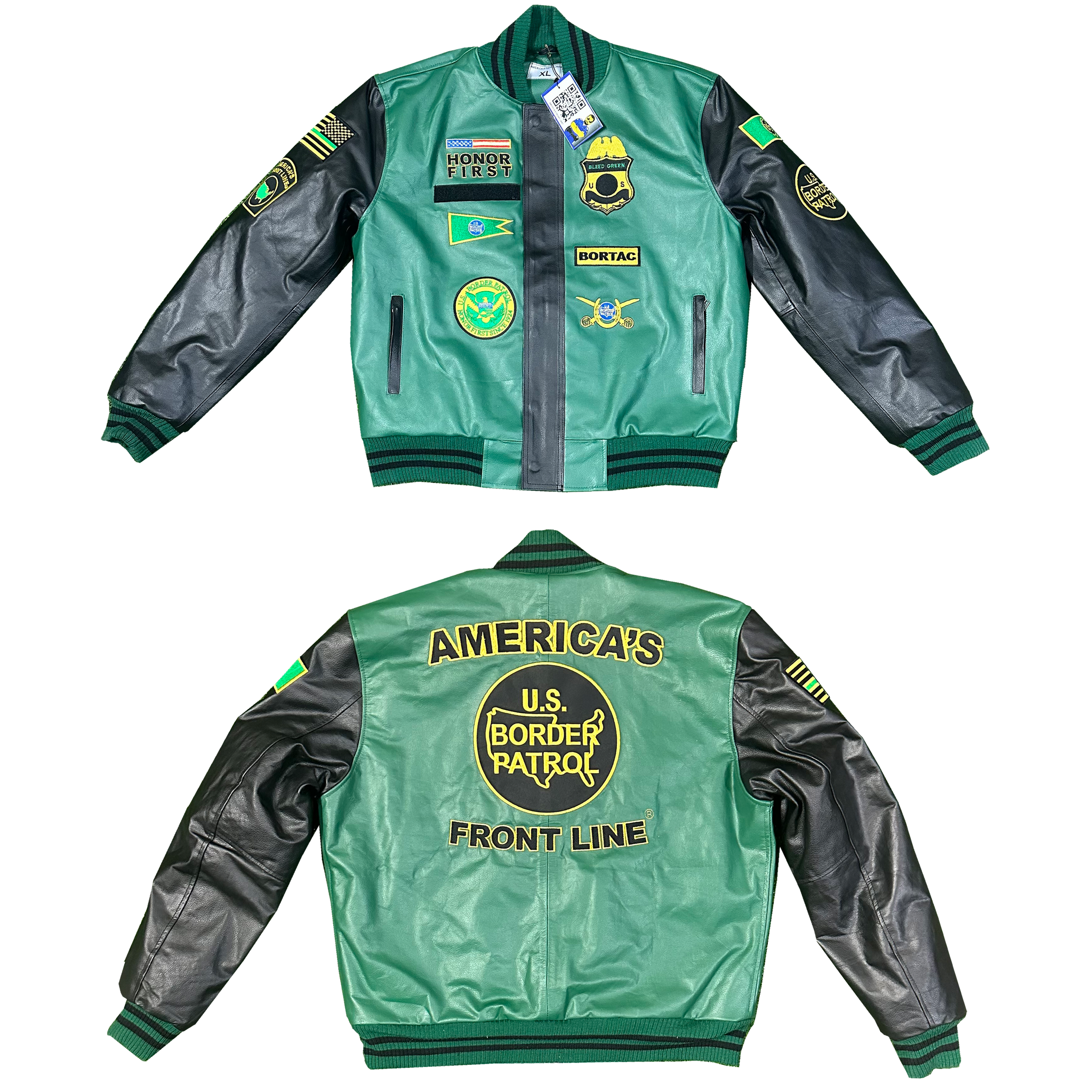 Pro CBP Border Patrol Custom Leather Bomber Varsity Jacket BPA Honor First Coat Thin Green Line