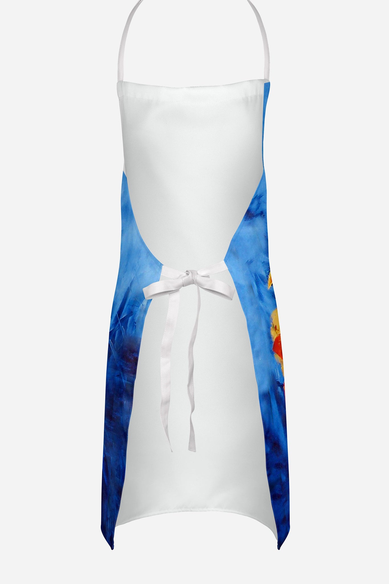 Elevate your cooking, baking, and grilling experiences with our versatile Kitchen or BBQ Apron. This Bib Style apron isn't just limited to culinary activities - it also serves as an excellent baking apron, artist apron, server apron, gardening apron, or even a dog grooming apron. The apron showcases vibrant full-color artwork contributed by one of our talented artists, bringing a dash of style to your daily tasks. With dimensions of approximately 27"W x 30"H, it provides ample coverage to protect your clothing from spills and splashes. Our apron is meticulously crafted from 100% Ultra Spun Polyester, known for its durability and lightweight nature. The apron comes with white tie straps, ensuring a comfortable and adjustable fit for all. It's a perfect choice for kitchen apron enthusiasts, whether you are a woman or a man. Designed for easy maintenance, this apron is fully machine washable. The quick-drying polyester material actively reduces staining, keeping your apron looking fresh and new for longer. Our beautifully designed apron isn't just a functional kitchen accessory - it's a fashion statement in the culinary world!
