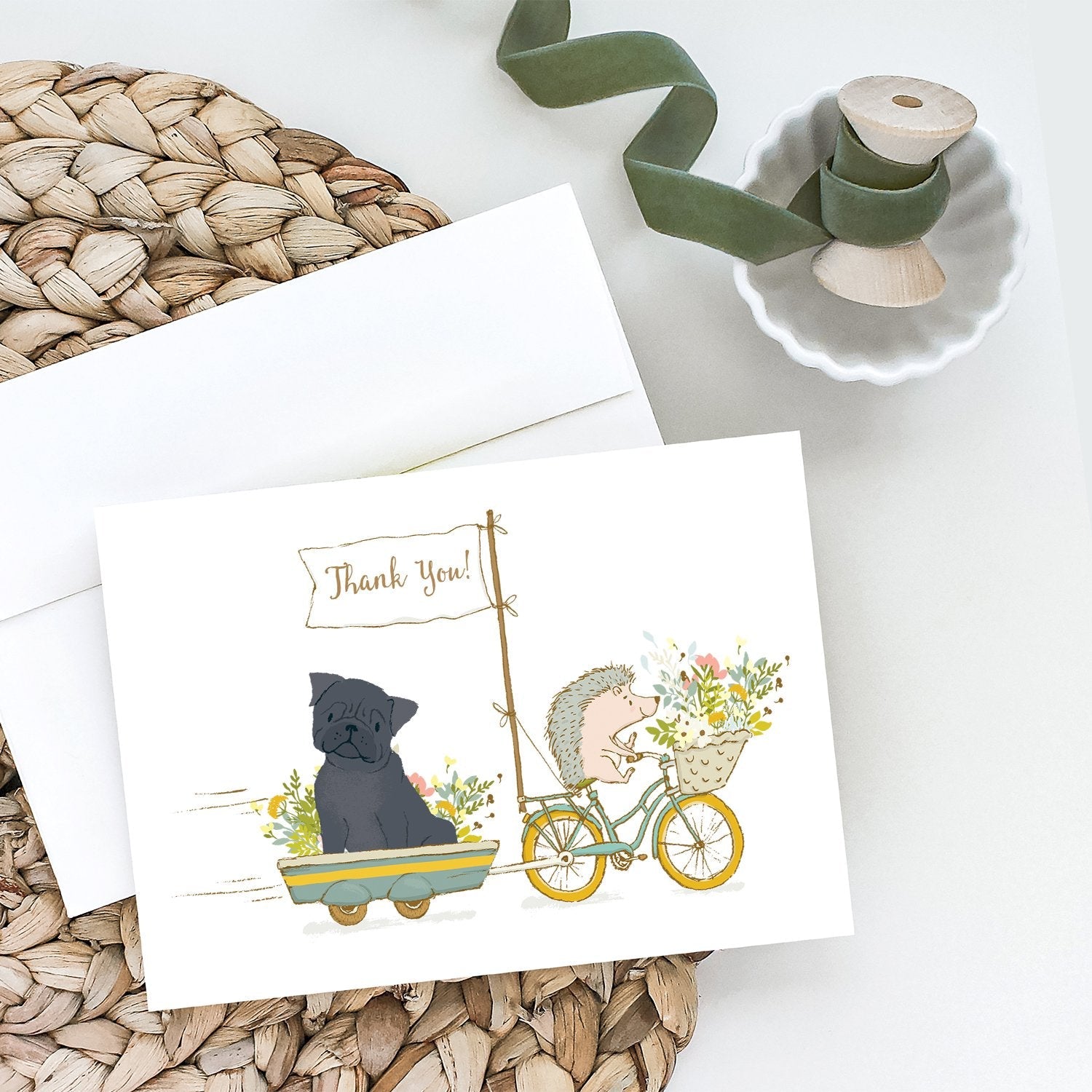 Pug Black Greeting Cards - Blank Note Cards – 8-Pack of Artist-Designed Cards with Envelopes