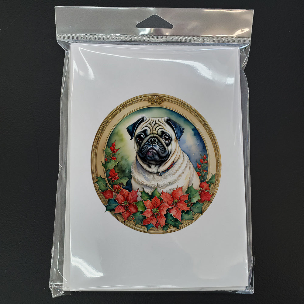Pug Christmas Flowers Greeting Cards - Blank Note Cards – 8-Pack of Artist-Designed Cards with Envelopes