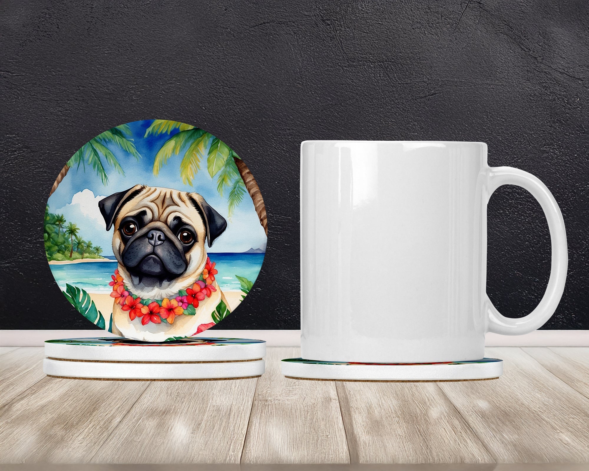 Large Sandstone Coasters Pack of 4 featuring breed specific Pug artwork. Introducing Caroline's Treasures Large Sandstone Coasters Pack of 4, the perfect addition to your home decor. Each coaster measures nearly 4 inches and is made from absorbent sandstone with a cork backing. Designed and printed in the United States, these coasters feature artwork from Caroline's Treasures' talented artists. Protect your countertops and tables from hot and cold drink condensation with these absorbent coasters. They efficiently absorb moisture, ensuring your surfaces stay dry and clean. Choose from a wide range of designs to update and enhance your decor or give them as a thoughtful gift for any occasion. Cleaning is a breeze—simply wipe the coaster with a damp towel to remove any spills or stains. Each set comes in a brown gift box, making it ready to be wrapped for that special person in your life. These absorbent sandstone coasters also make an excellent housewarming gift, providing both practicality and style. Celebrate birthdays, Mother's Day, Father's Day, Thanksgiving, Christmas, Teacher's Appreciation Day, or simply show someone you care with these versatile and charming coasters. Caroline's Treasures Large Sandstone Coasters Pack of 4 is the perfect happy gift for any occasion.