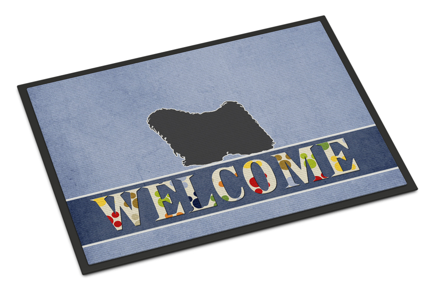 Decorate your space with our Puli artwork on a Doormat. Welcome your guests in style with our Artwork Door Mat, designed to withstand almost any weather condition. This mat, measuring approximately 18 by 27 inches, is held together by durable black binding tape. Its top layer, composed of polyester felt, is dyed with the eye-catching image you see on the mat. A few layers below provide the mat with stability, while its rubber bottom is stamped to help prevent slipping and ensures safety. Our mat works wonderfully as both an indoor or outdoor door mat. For cleaning, simply hose it off with water or use a power washer - no need for any cleaner that produces suds. Avoid scrubbing with a brush, instead, opt for the vacuum on floor setting. Designed manufactured and printed in the USA, this mat is a perfect addition to your porch, outdoor kitchen, entryway, or any indoor space. Its unique design makes it a charming decorative rug that greets your guests and adds a stylish touch to your home decor.