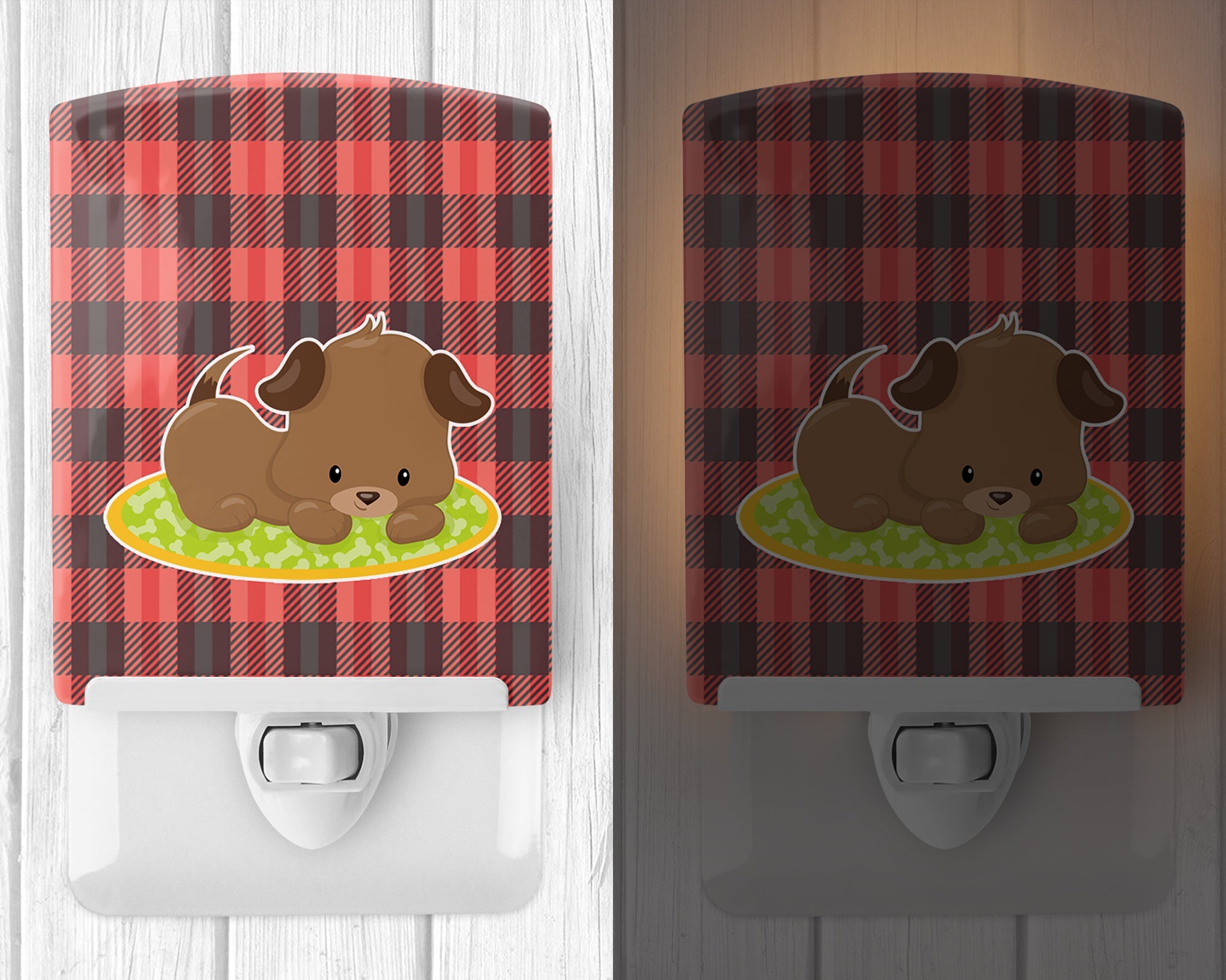 Puppy on Black Red Gingham Ceramic Night Light BB7072CNL