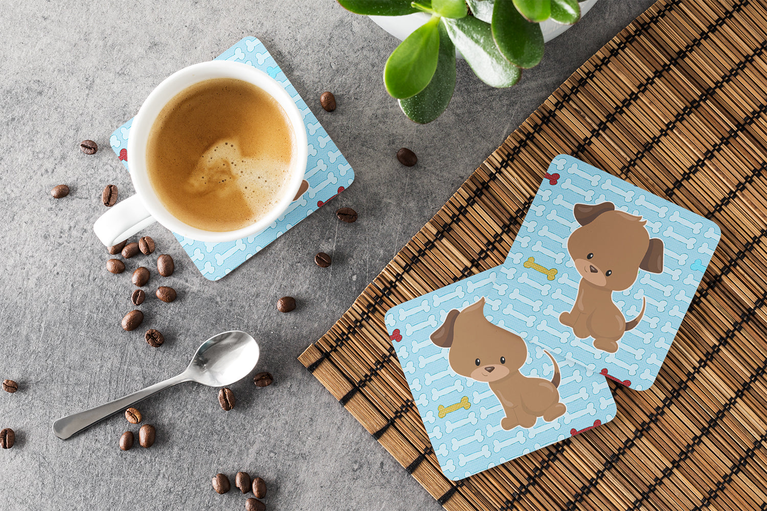 Puppy on Blue Bones Foam Coaster  BB7079FC