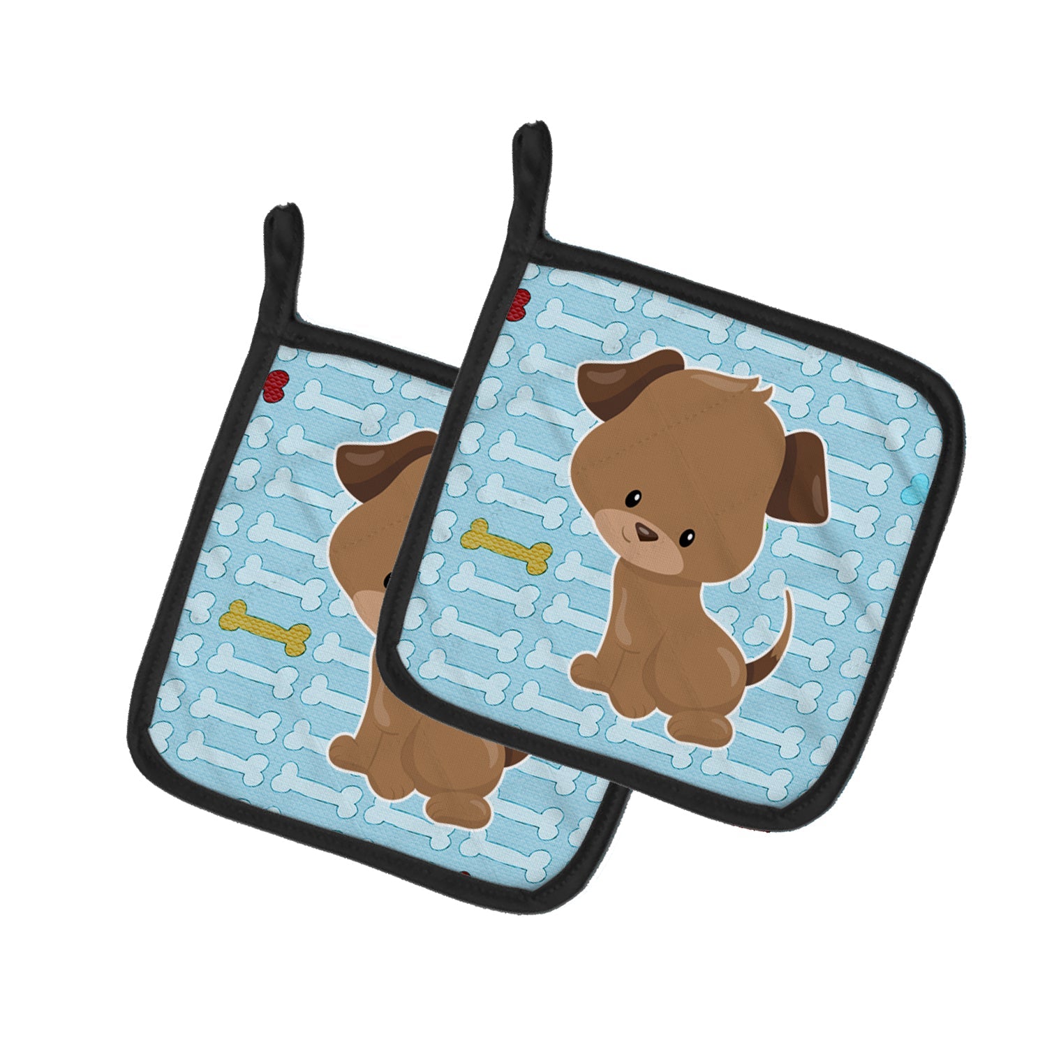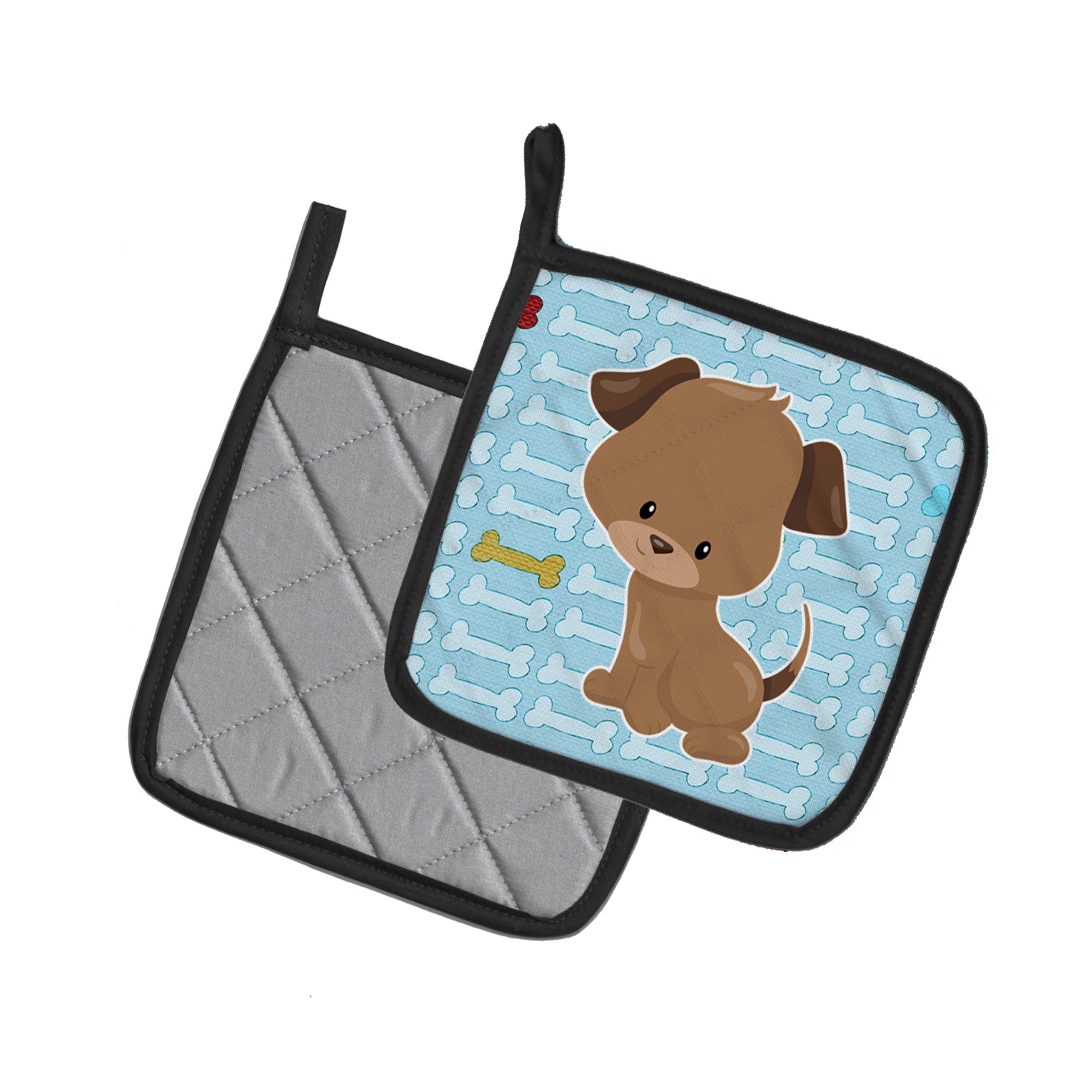 Puppy on Blue Bones Pot Holders - Set of 2 - Heat-Resistant Kitchen Essentials BB7079PTHD