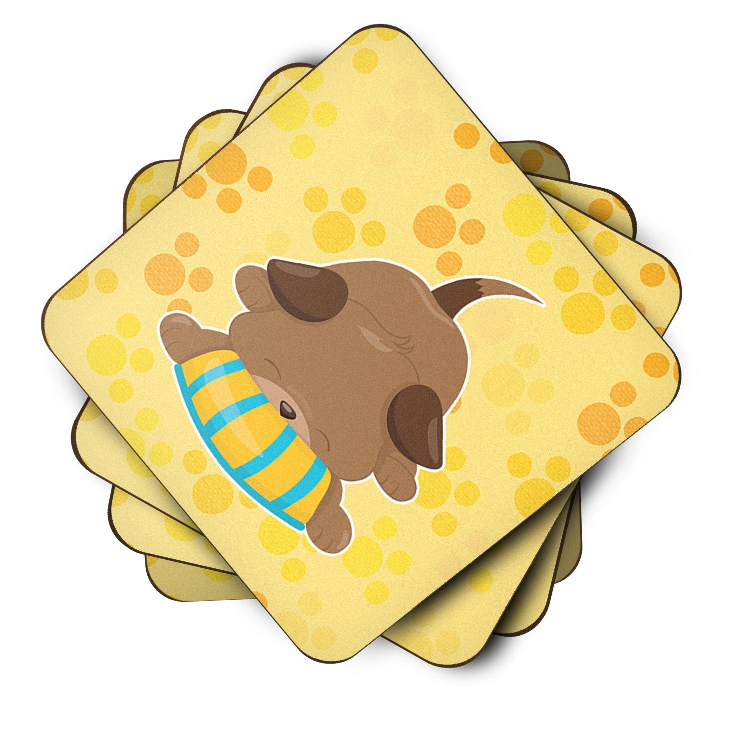 Puppy on Yellow Pawprints Foam Coaster  BB7076FC