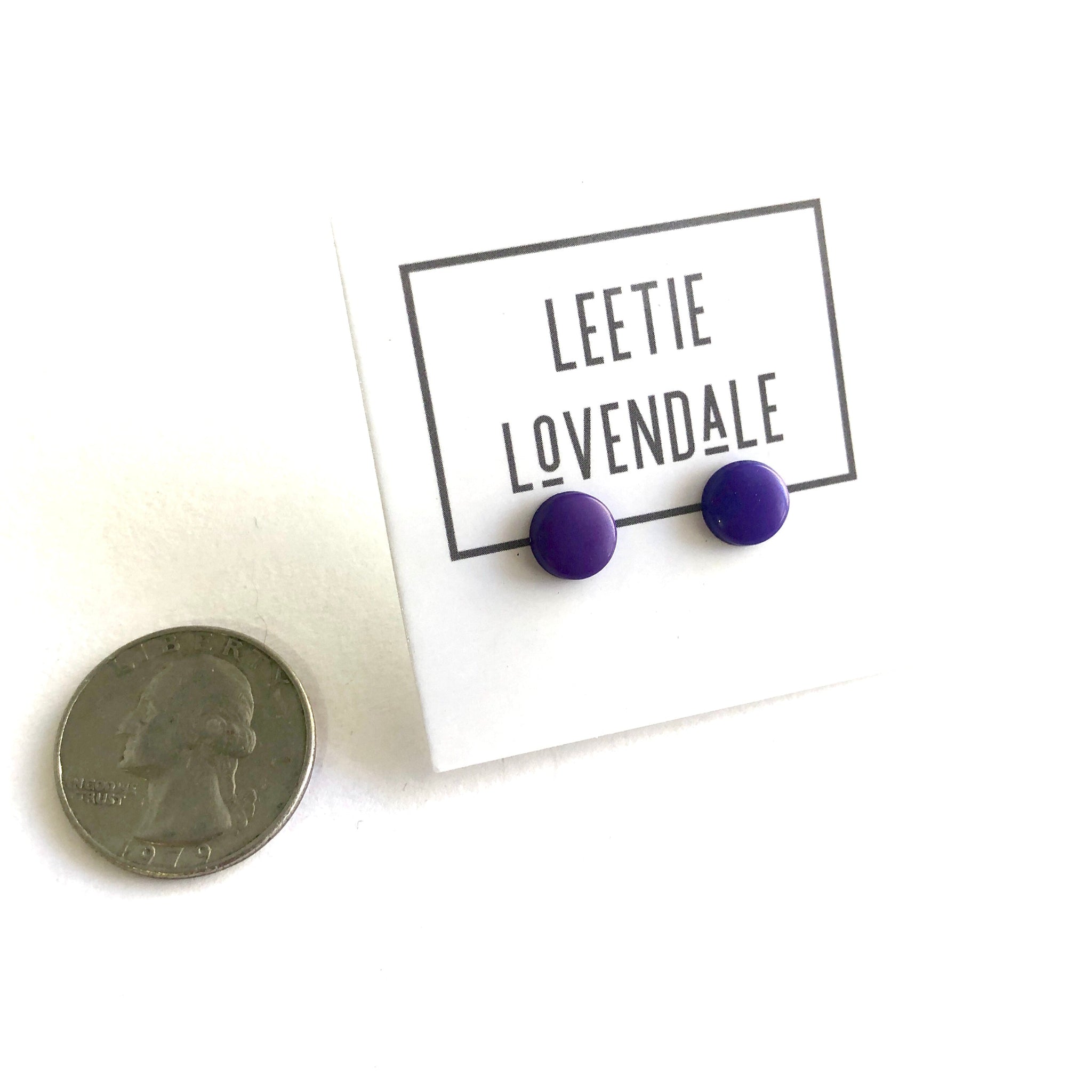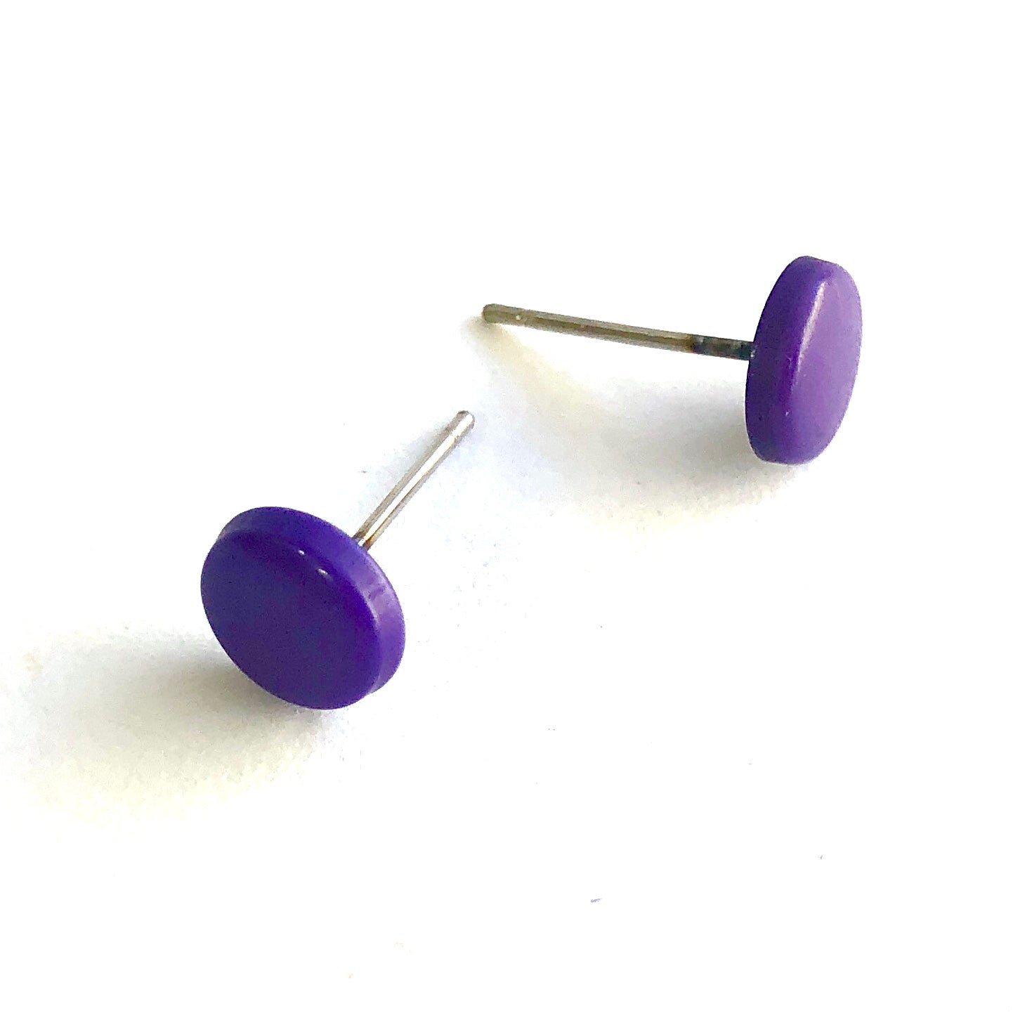 Incredibly mod and so today! These lovely purple stud earrings area retro mod disc shape with a opaque finish. They are about 10mm in diameter and thin, these button earrings are the perfect mix of classic and mod retro.