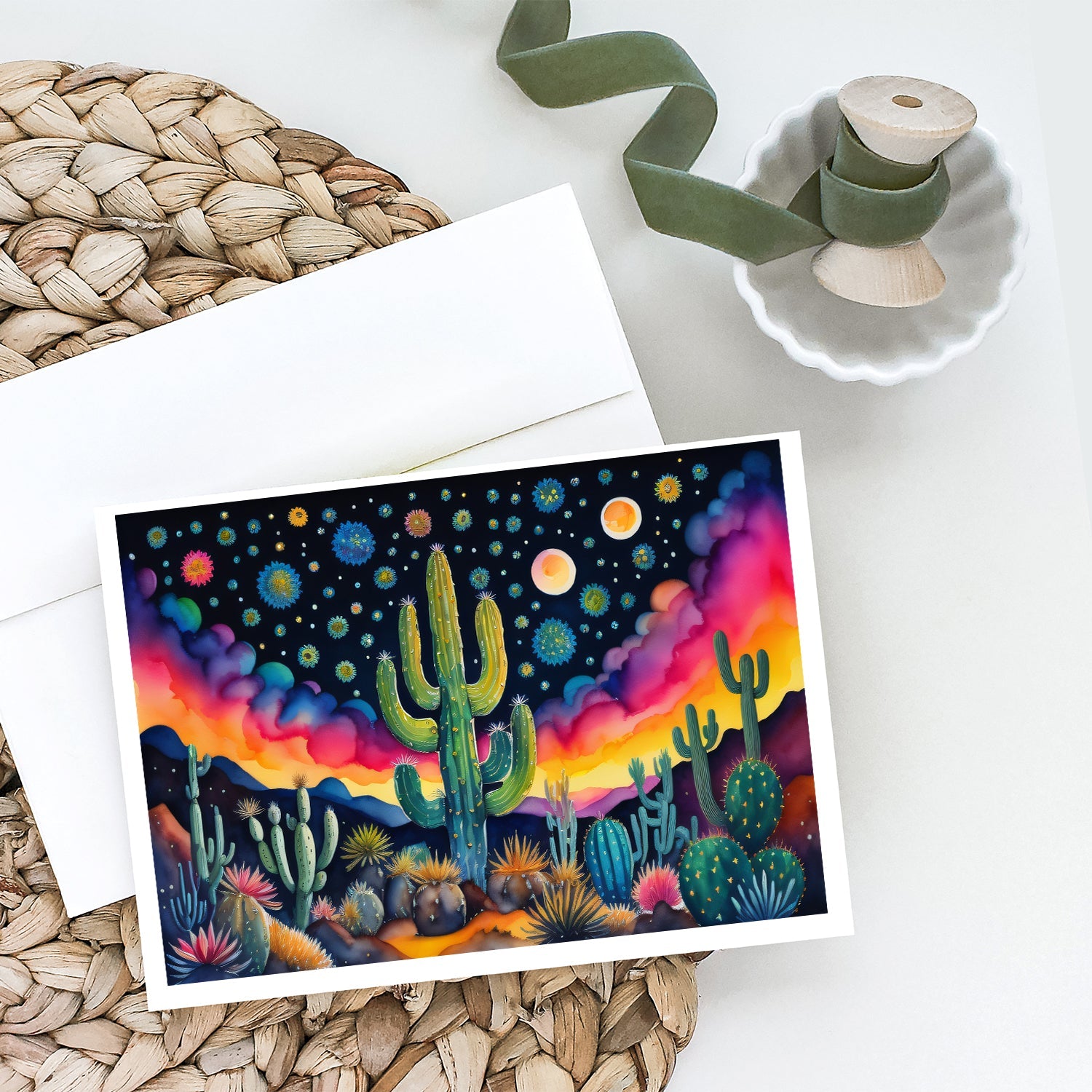 Queen of the Night Cactus in Color Greeting Cards - Blank Note Cards – 8-Pack of Artist-Designed Cards with Envelopes
