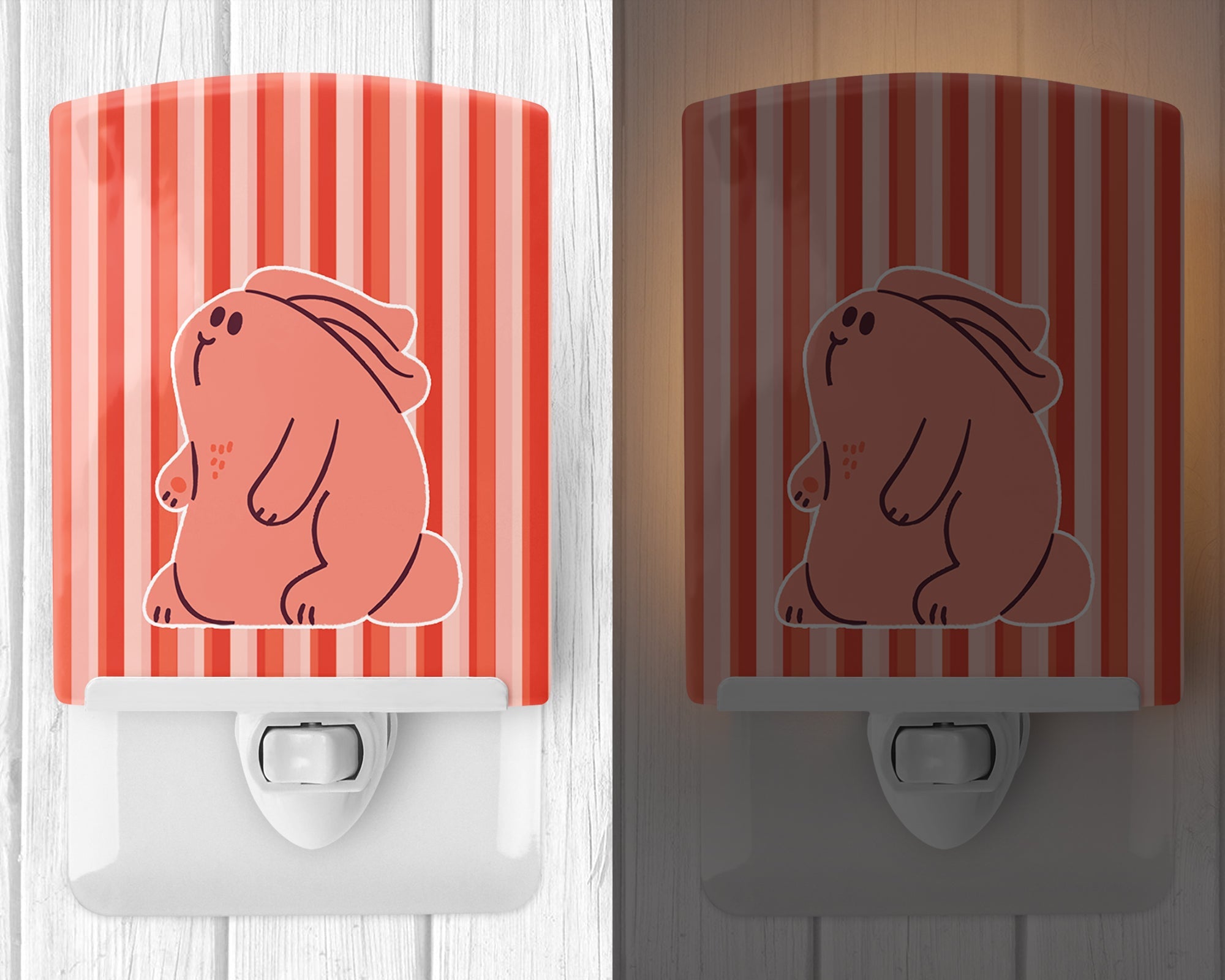 Rabbit on Pink Stripes Ceramic Night Light BB7080CNL