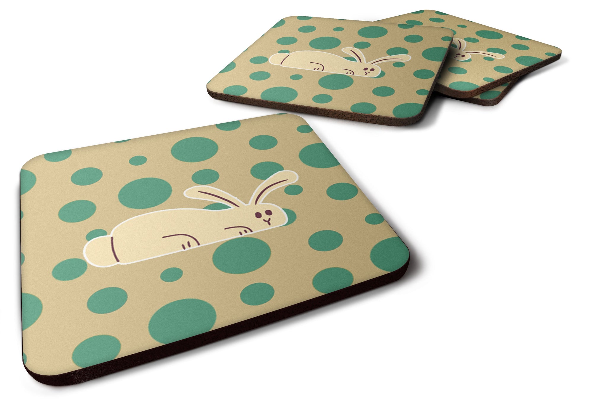 Decorate your space with our Rabbit artwork on a Coaster set. Presenting our Set of 4 Foam Coasters, a stylish and practical addition to your table setting. Each square coaster, measuring 3 1/2 inches by 3 1/2 inches, is perfectly sized to accommodate various drinkware, from coffee mugs to tumblers. These coasters stand out with their full-color artwork, permanently dyed onto the material for a vibrant and fade-resistant finish. They're not just functional, they're a fashionable statement, adding a touch of flair to any gathering or event. Our foam coasters serve a dual purpose - they protect your table from water stains and are perfect for both hot and cold drinks. The material used is similar to that of our high-quality mouse pads, ensuring durability and heat resistance. These coasters are easy to maintain - simply wash them in the top of your dishwasher and lay flat to dry. The design won't come off, ensuring they retain their vivid colors for years. Pair them with one of our insulated coolers or huggers for a cohesive, thoughtful gift set. Enhance your beverage experience with our Set of 4 Foam Coasters.