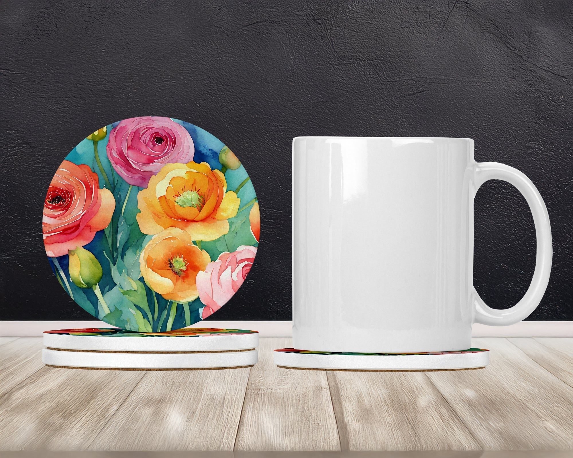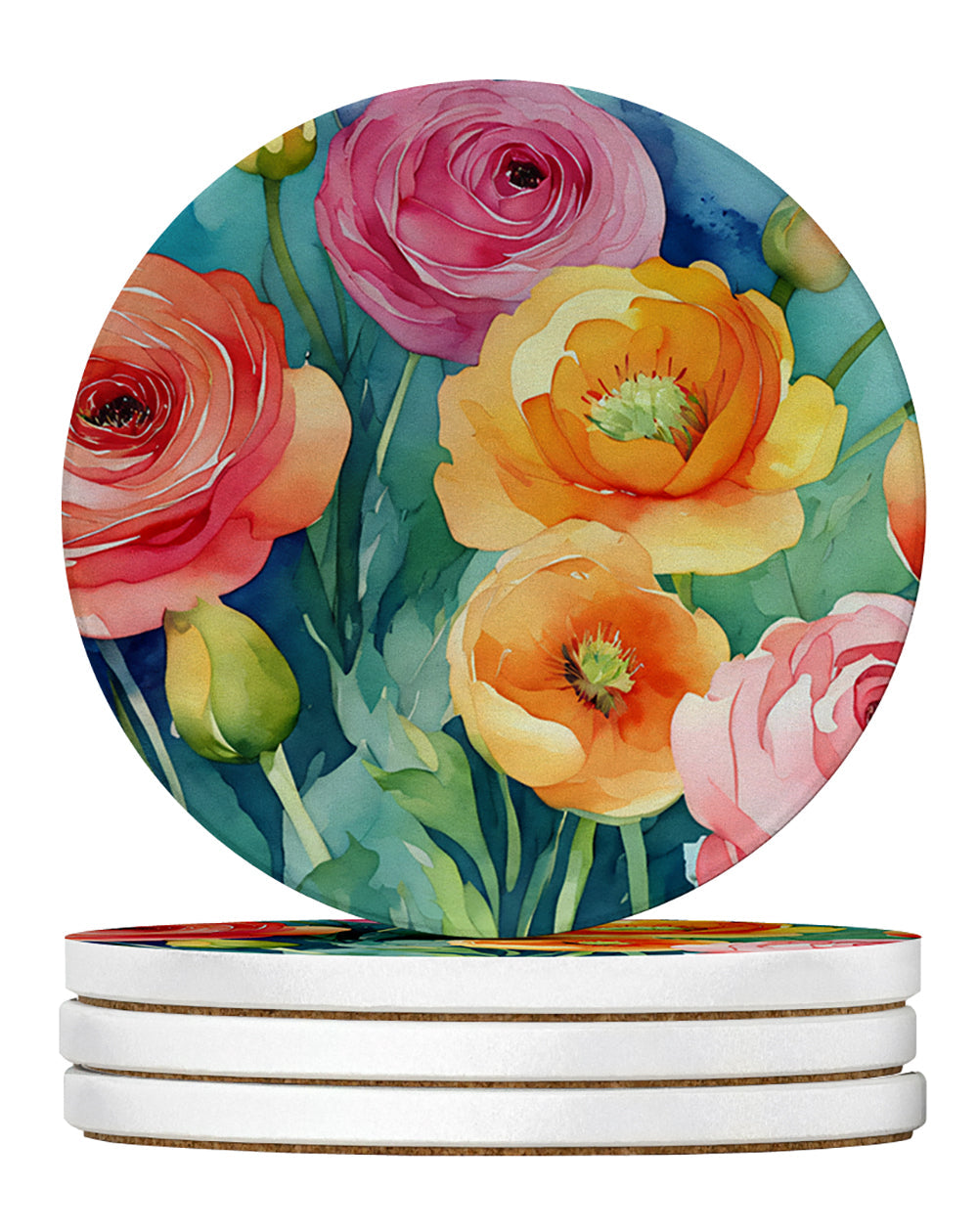 Ranunculus in Watercolor Large Sandstone Coasters Pack of 4