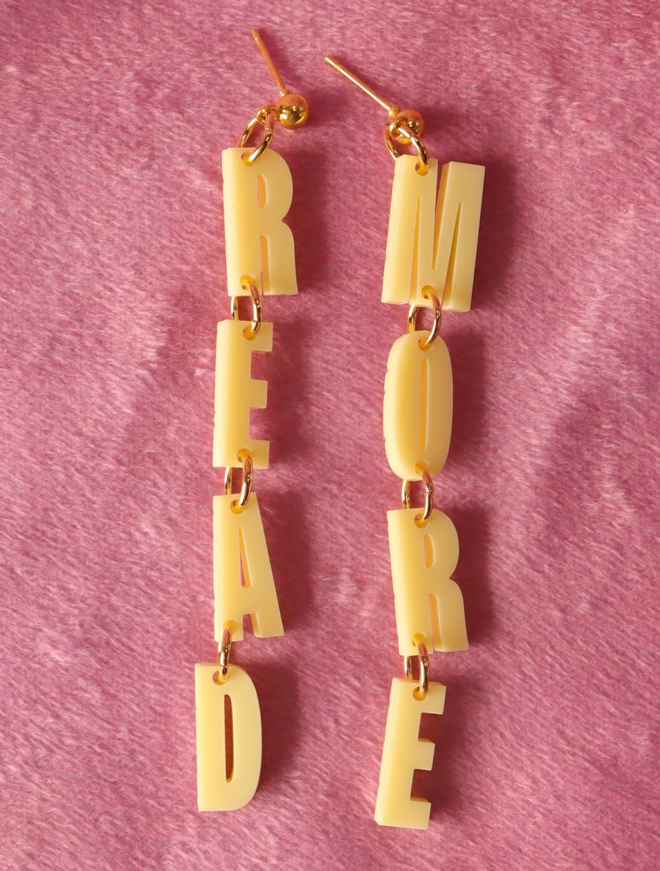Experience the power of words with our "READ MORE" Dangle Earrings! These simple letters dangle elegantly to spell out "read" and "more", serving as a perfect reminder to always keep learning and exploring. Show off your love for reading while adding a touch of style to any outfit.