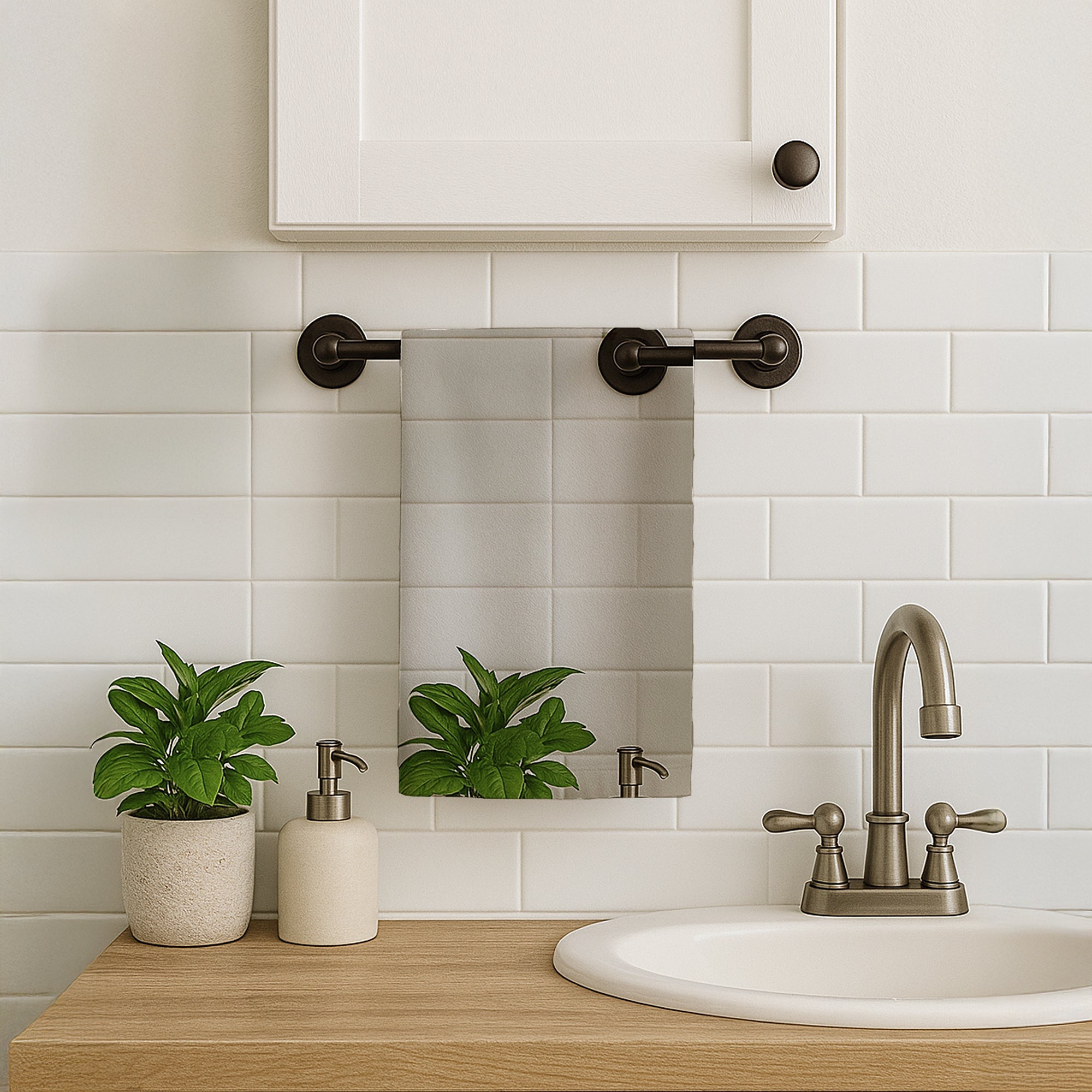 Kitchen Towel featuring breed specific Akita artwork. Celebrate Christmas with this Christmas Kitchen Towel. Bring cozy holiay charm to your sink or powder room with a plush velour towel featuring original watercolor artwork. The front is a soft, color-rich minky polyester that polishes glassware to a brilliant shine; the back is 100% white cotton terry loop for quick absorbency on hands, dishes, and counters. Artwork is dyed into the fibers for lasting color that won’t crack or peel. Finished edges keep the shape wash after wash. Size: 15" x 25". Machine wash; tumble dry low. Designed and printed in the USA.