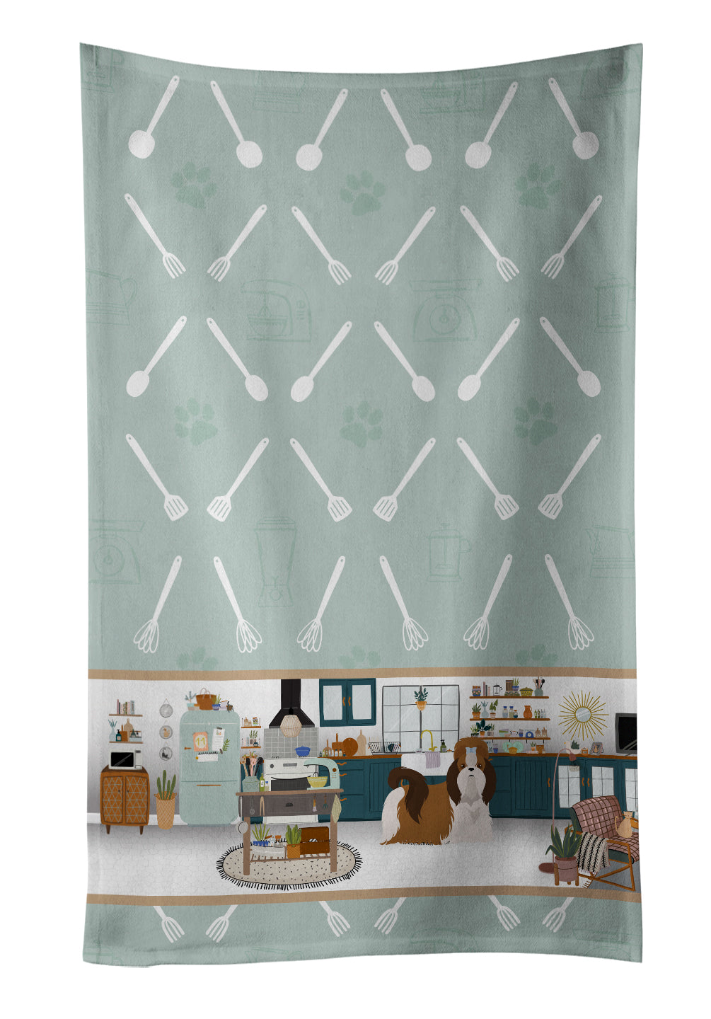 Decorate your space with our Shih Tzu artwork on a Kitchen Towel. Experience the perfect blend of aesthetic appeal and functional excellence with our Plush Velour Kitchen Towels. These are not your ordinary decorative kitchen towels that gather dust. Instead, they are designed to be as practical as they are stylish. The front layer of our towel is constructed from a minky plush polyester, known for its durability and color retention. Unlike conventional kitchen towels, the artwork on our towels is dyed directly into the fabric, ensuring vibrant colors that last. Polish your glassware to a brilliant sparkle using the plush front side of the towel. Flip to the back, crafted from 100% cotton terry loop, to exploit its exceptional absorbency for drying dishes or wiping down counters. Our kitchen towels redefine the concept of functional art, offering lasting quality that maintains the towel's shape over time. Measuring 15 inches by 25 inches and weighing 2.3 lbs per dozen, these towels deliver an overwhelming sensory experience with their soft, plush, and smooth texture. The edges are meticulously finished with binding, enhancing their durability and visual appeal. For your convenience, these towels are machine washable and can be dried on low heat. After the first wash, the top fabric becomes even softer and fluffier, eliminating the need for ironing. Treat your kitchen to the luxury and functionality it deserves with our plush velour kitchen towels.
