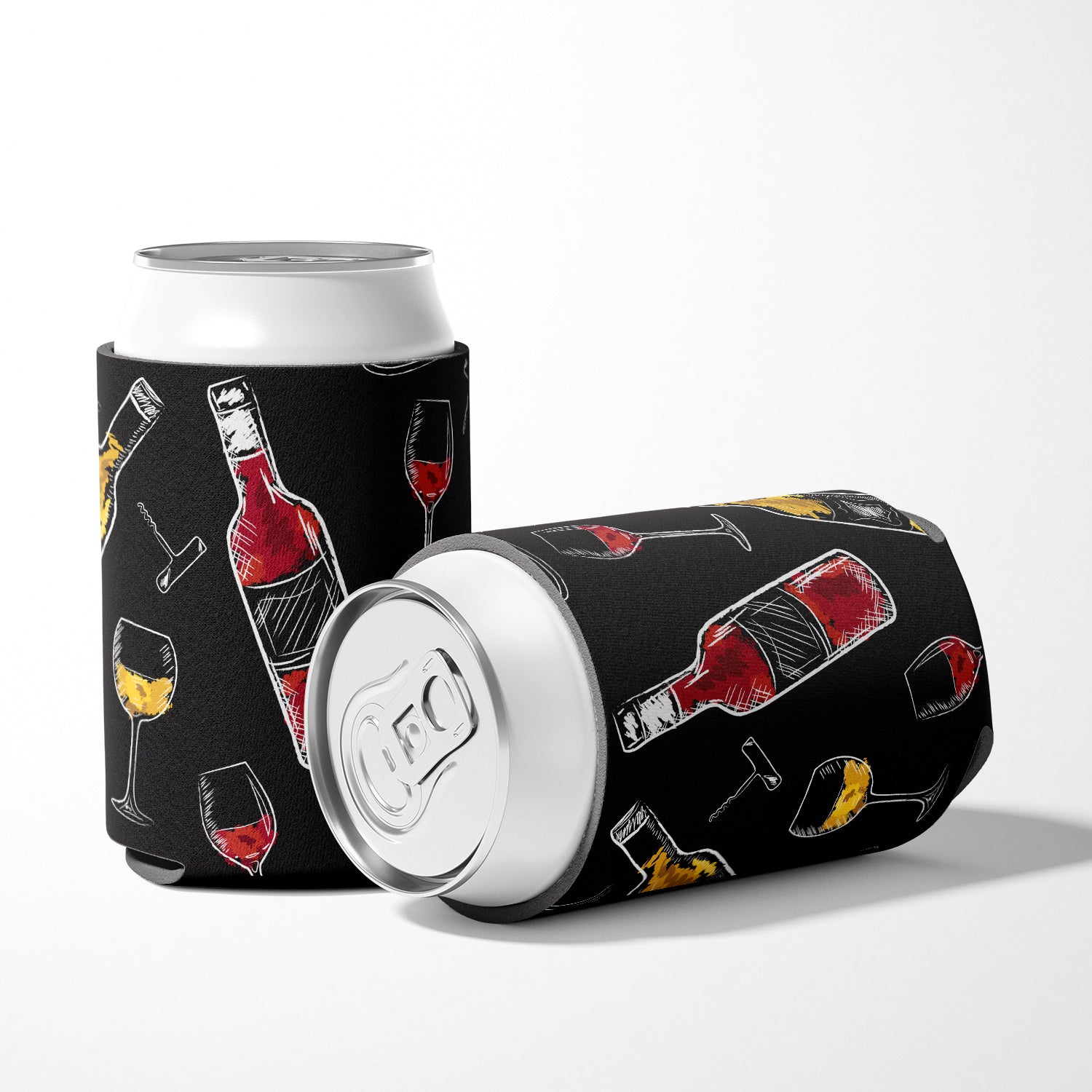 Red and White Wine on Black Can or Bottle Hugger BB5197CC