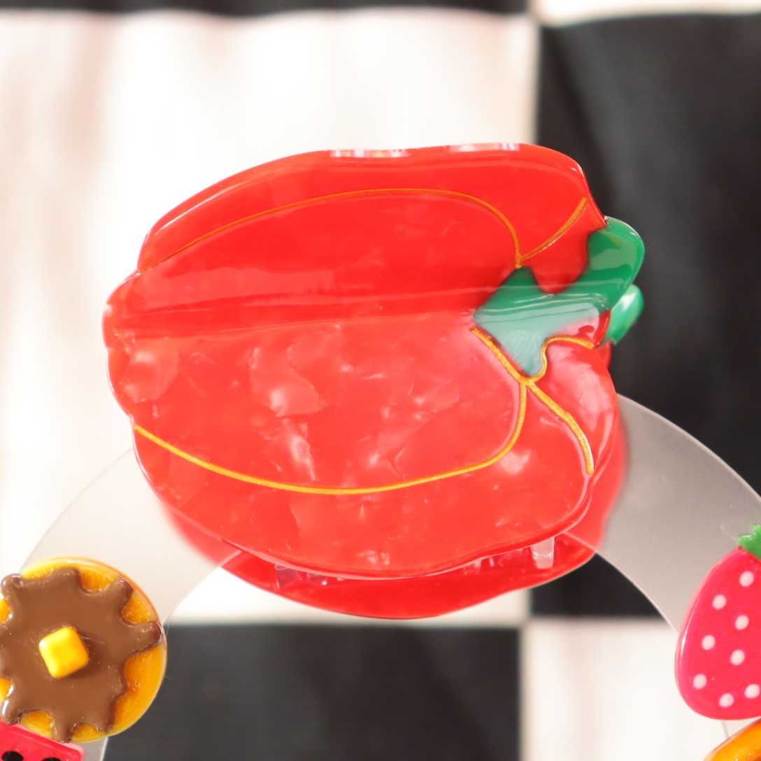 Add some spice to your hair! Our Red Bell Pepper Hair Claw captures the vibrant color and unique shape of a bell pepper. Its small size makes it perfect for a subtle but bold statement. Perfect for holding your hair in place with a touch of fun.