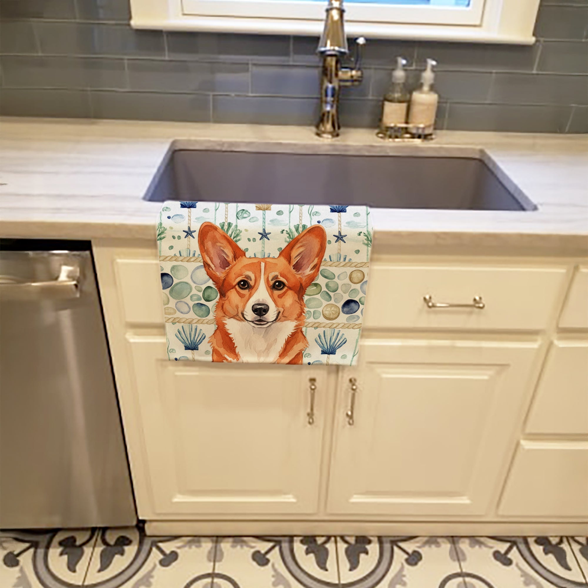 Red Cardigan Welsh Corgi Coastal Sea Glass Kitchen Towel