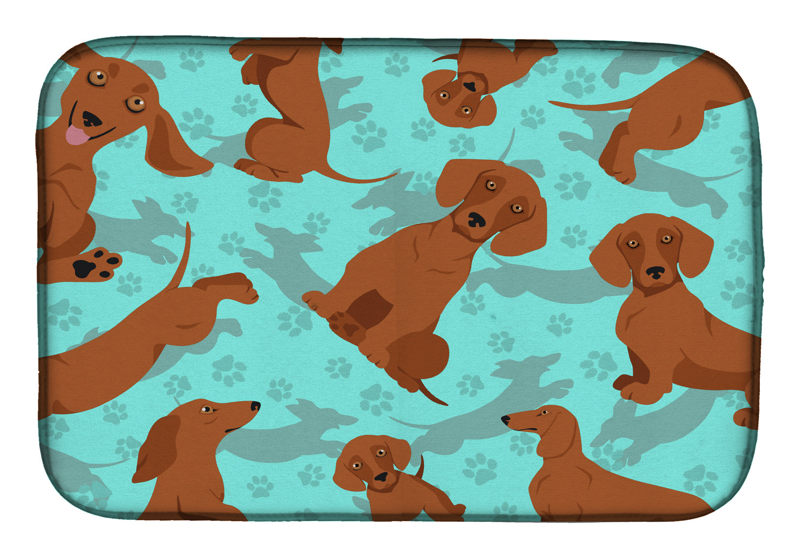 Red Dachshund Dish Drying Mat – Absorbent, Artistic Kitchen Essentials