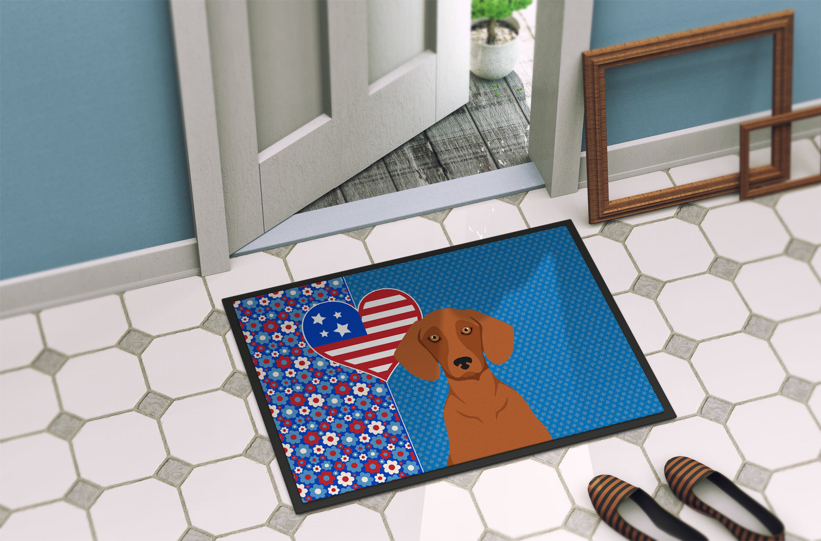 Red Dachshund USA American Doormat - 24x36 Decorative Floor Mat – Indoor/Outdoor Rug with Artistic Flair
