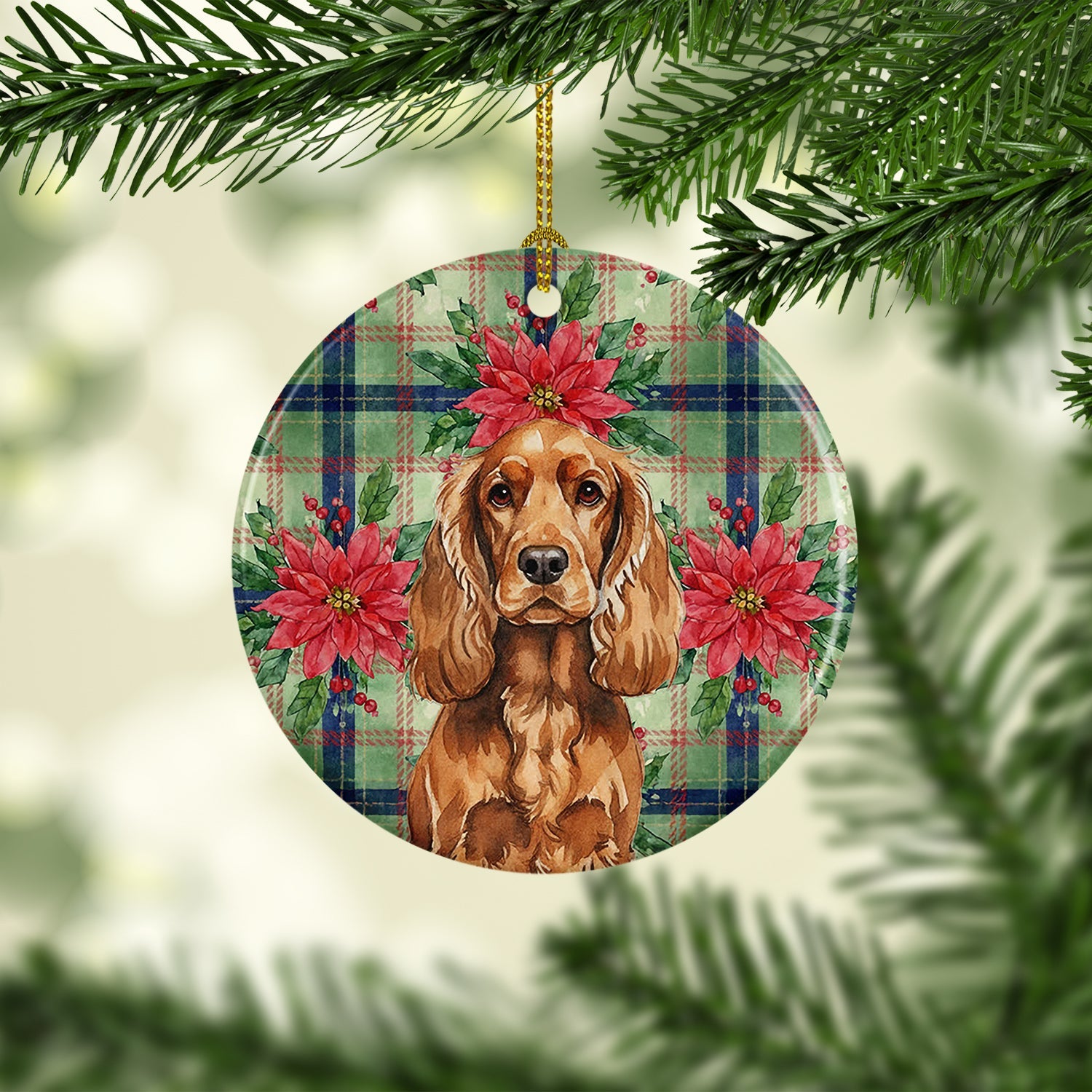 Red English Cocker Spaniel Christmas PoinsettIas Ceramic Ornament