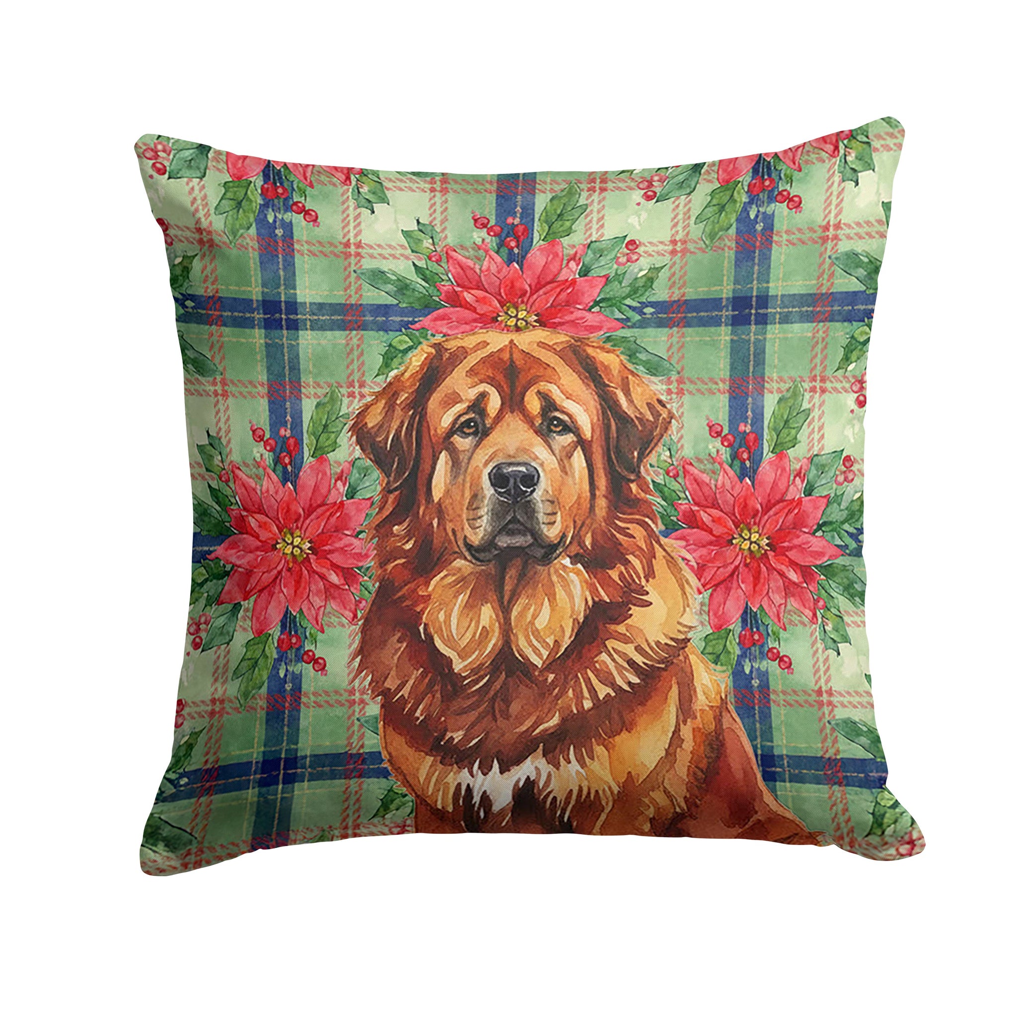 Throw Pillow featuring breed specific Tibetan Mastiff artwork. Celebrate Christmas with this Christmas Pillow. Add a touch of vibrancy and comfort to your outdoor seating with Caroline's Treasures Fabric Decorative Pillow. Measuring approximately 14 inches by 14 inches, this outdoor pillow is crafted to elevate the appeal of your patio furniture, infusing it with vivid color and artistic flair. The pillow includes a 100% Polyester Fabric sham filled with a quality pillow form to provide superior comfort. Innovatively made from our brand new material, specifically woven for its water resistance, this pillow is designed for durability. The soft canvas fabric offers versatility in use, fit for your indoor couch or your outdoor patio, porch, or veranda. The fabric is dyed with colorfast dyes built for resilience against weather conditions, ensuring the pillow retains its beauty over time. Constructed by sewing three fabric pieces to create a sham, the polyester insert is then nestled inside to form the pillow, resulting in an overstuffed pillow that maintains its shape. Both the sham and the pillow insert are proudly made in the United States. As the pillows are handcrafted, there may be minor variations in size, further enhancing their unique charm. Experience comfort in style with Caroline's Treasures Fabric Decorative Pillow.