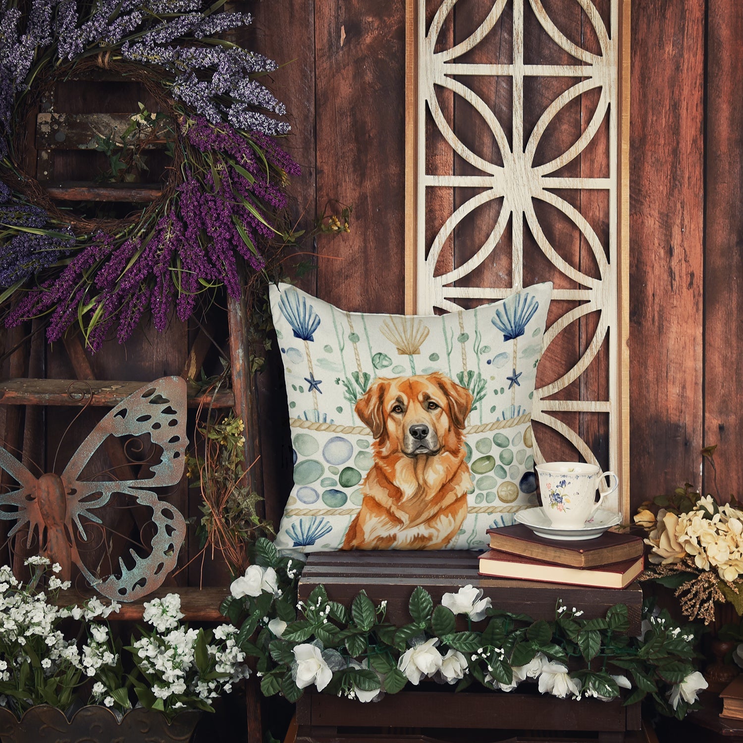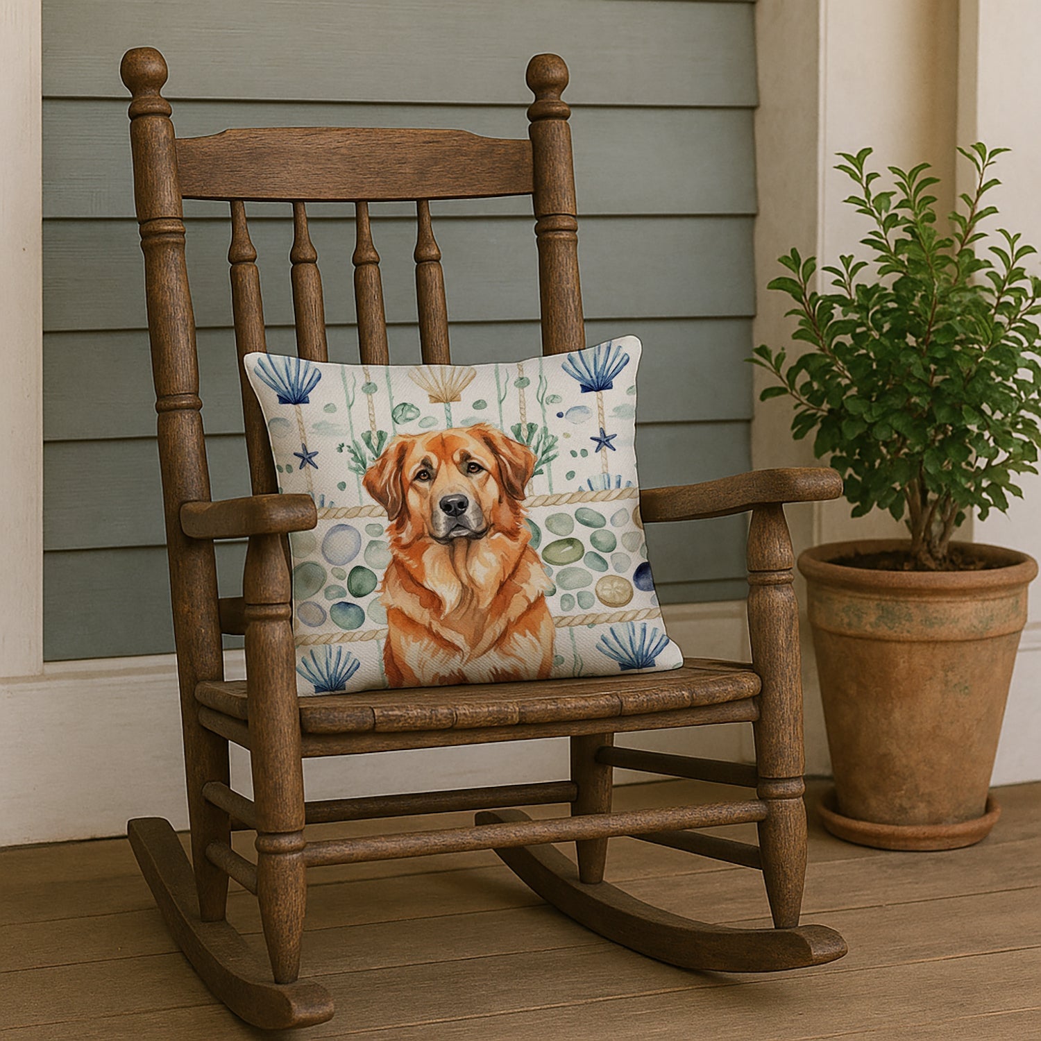 Red Leonberger Coastal Sea Glass Throw Pillow