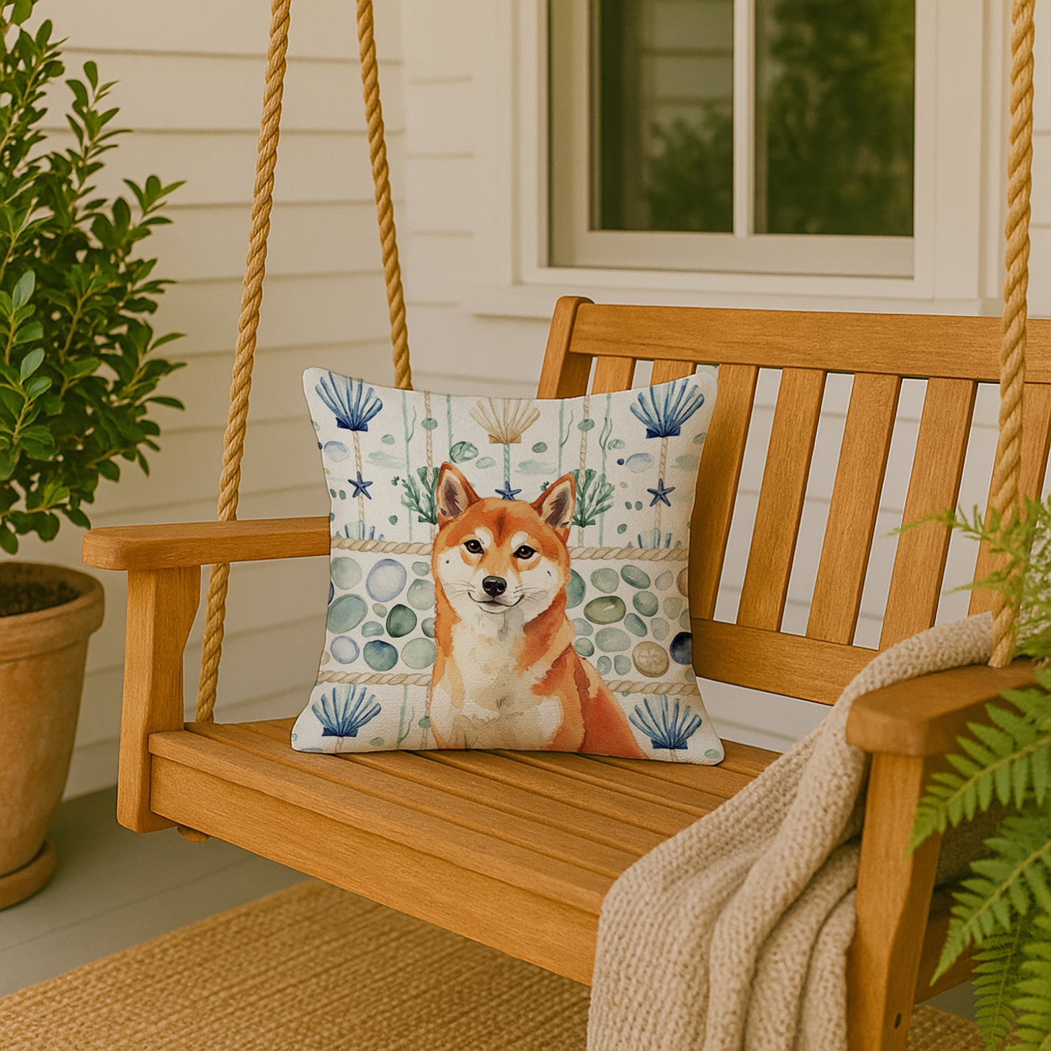 Throw Pillow featuring breed specific Shiba Inu artwork. Revitalize your outdoor or indoor living space with Caroline's Treasures 18x18 Fabric Decorative Pillow. With a generously sized dimension of approximately 18 inches by 18 inches, this pillow makes a comfortable and aesthetic addition to any seating area. Made from a unique, water-resistant material developed by Caroline's Treasures, the pillow sham is 100% polyester fabric that's durable and ready to weather any condition. Its vibrant, full-color artwork will not fade over time as it is dyed with color-fast dyes. Whether you place it on your patio furniture, porch, veranda, or indoor couch, its soft canvas fabric ensures a cozy experience. The pillow is handcrafted in the United States, featuring a sham created from three pieces of fabric and a polyester insert for enduring shape and overstuffed comfort. Despite being robustly built to endure the outdoors, it is as soft and snug as your favorite indoor cushions. Please note, as all our pillows are handmade, sizes may vary slightly, adding to the charm of this unique decorative item.