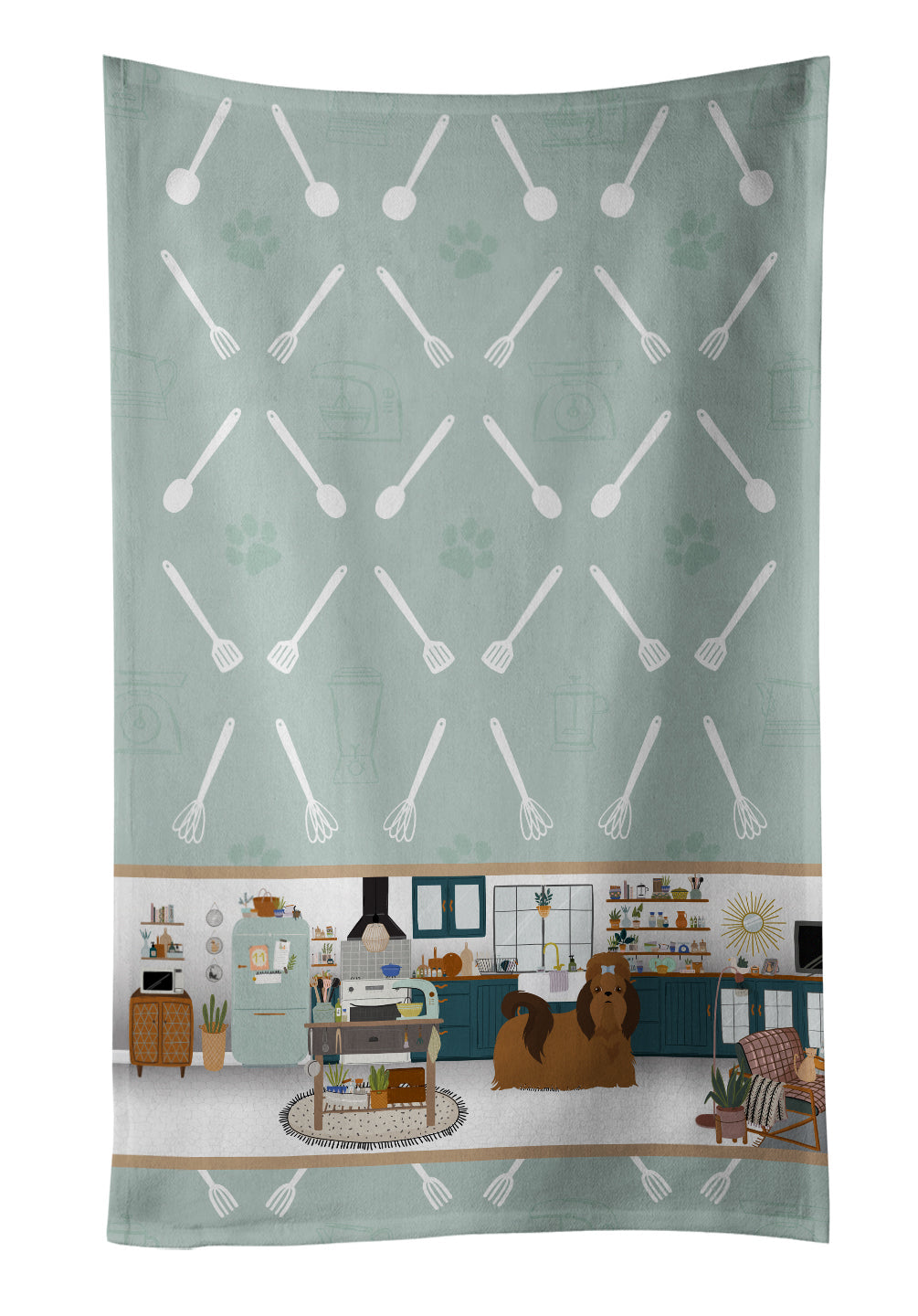 Decorate your space with our Shih Tzu artwork on a Kitchen Towel. Experience the perfect blend of aesthetic appeal and functional excellence with our Plush Velour Kitchen Towels. These are not your ordinary decorative kitchen towels that gather dust. Instead, they are designed to be as practical as they are stylish. The front layer of our towel is constructed from a minky plush polyester, known for its durability and color retention. Unlike conventional kitchen towels, the artwork on our towels is dyed directly into the fabric, ensuring vibrant colors that last. Polish your glassware to a brilliant sparkle using the plush front side of the towel. Flip to the back, crafted from 100% cotton terry loop, to exploit its exceptional absorbency for drying dishes or wiping down counters. Our kitchen towels redefine the concept of functional art, offering lasting quality that maintains the towel's shape over time. Measuring 15 inches by 25 inches and weighing 2.3 lbs per dozen, these towels deliver an overwhelming sensory experience with their soft, plush, and smooth texture. The edges are meticulously finished with binding, enhancing their durability and visual appeal. For your convenience, these towels are machine washable and can be dried on low heat. After the first wash, the top fabric becomes even softer and fluffier, eliminating the need for ironing. Treat your kitchen to the luxury and functionality it deserves with our plush velour kitchen towels.