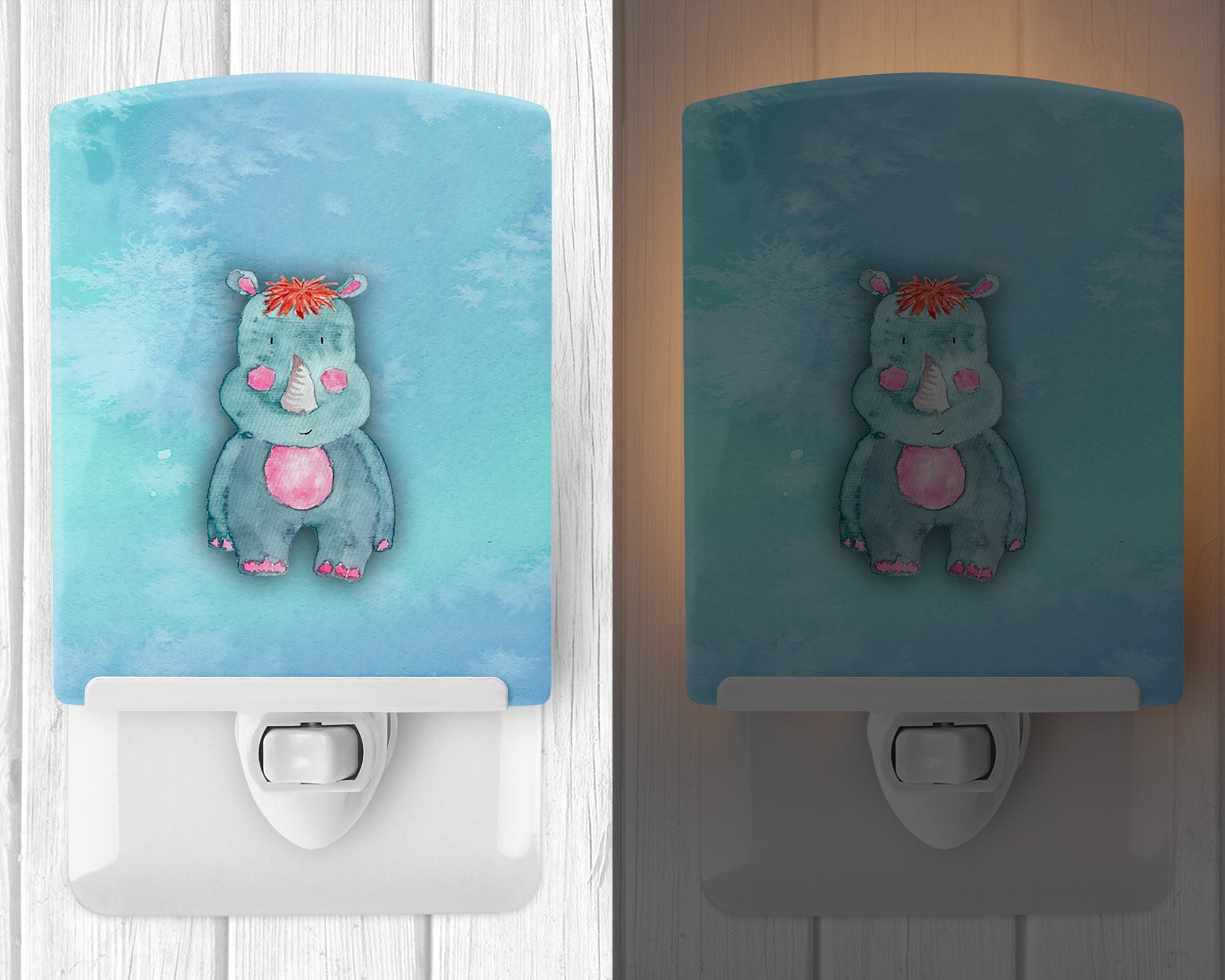 Decorate your space with our Rhinoceros artwork on a Night Light. Introduce a splash of artistic flair and subtle illumination to your space with the Decorative Ceramic Night Light from Caroline's Treasures. Perfect for any room, this night light seamlessly blends functionality with an aesthetic appeal, offering a stylish solution to brighten up dark corners of your home or office. Boasting a six-inch high by four-inch wide ceramic tile at the front, it showcases vivid, full-color artwork from distinguished artists, transforming a simple utility into a vibrant art piece. The artwork is securely encased in a robust metal holder, ensuring durability and longevity. Two screws are provided to firmly affix the tile into the holder. The holder extends three inches deep, housing an included bulb that emits a soft, welcoming glow. This product meets all safety standards, as evidenced by its UL approval. Proudly made in the United States from imported components, this Decorative Ceramic Night Light is not just a functional device; it's a statement piece that enhances the ambiance of your surroundings.