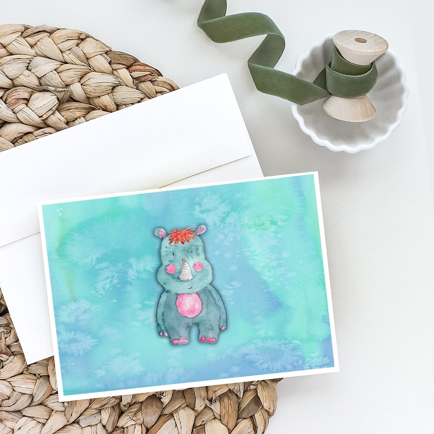 Decorate your space with our Rhinoceros artwork on a . Celebrate special moments with Caroline's Treasures Printed Greeting Card Pack. This pack includes eight beautifully folded 5x7 cards, accompanied by eight matching white envelopes. With blank interiors, these cards provide ample space for your personalized messages and heartfelt holiday greetings. Each card features captivating full-color artwork, meticulously printed in our facility on high-quality 80 lb cover stock or 216 GSM. The super smooth finish of the white cards enhances the visual impact of the artwork, creating a truly stunning presentation. Designed by our talented in-house artists or licensed artists, the artwork on these cards showcases their creativity and attention to detail. From vibrant illustrations to captivating designs, each card tells its own unique story. Whether it's for birthdays, anniversaries, holidays, or any special occasion, Caroline's Treasures Greeting Card Pack is the perfect way to convey your heartfelt sentiments. Share joy, love, and warm wishes with these exquisite cards and make every moment unforgettable.
