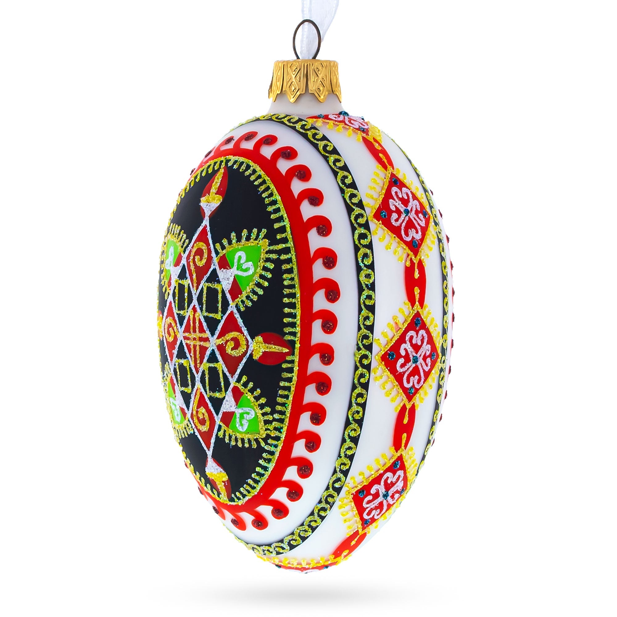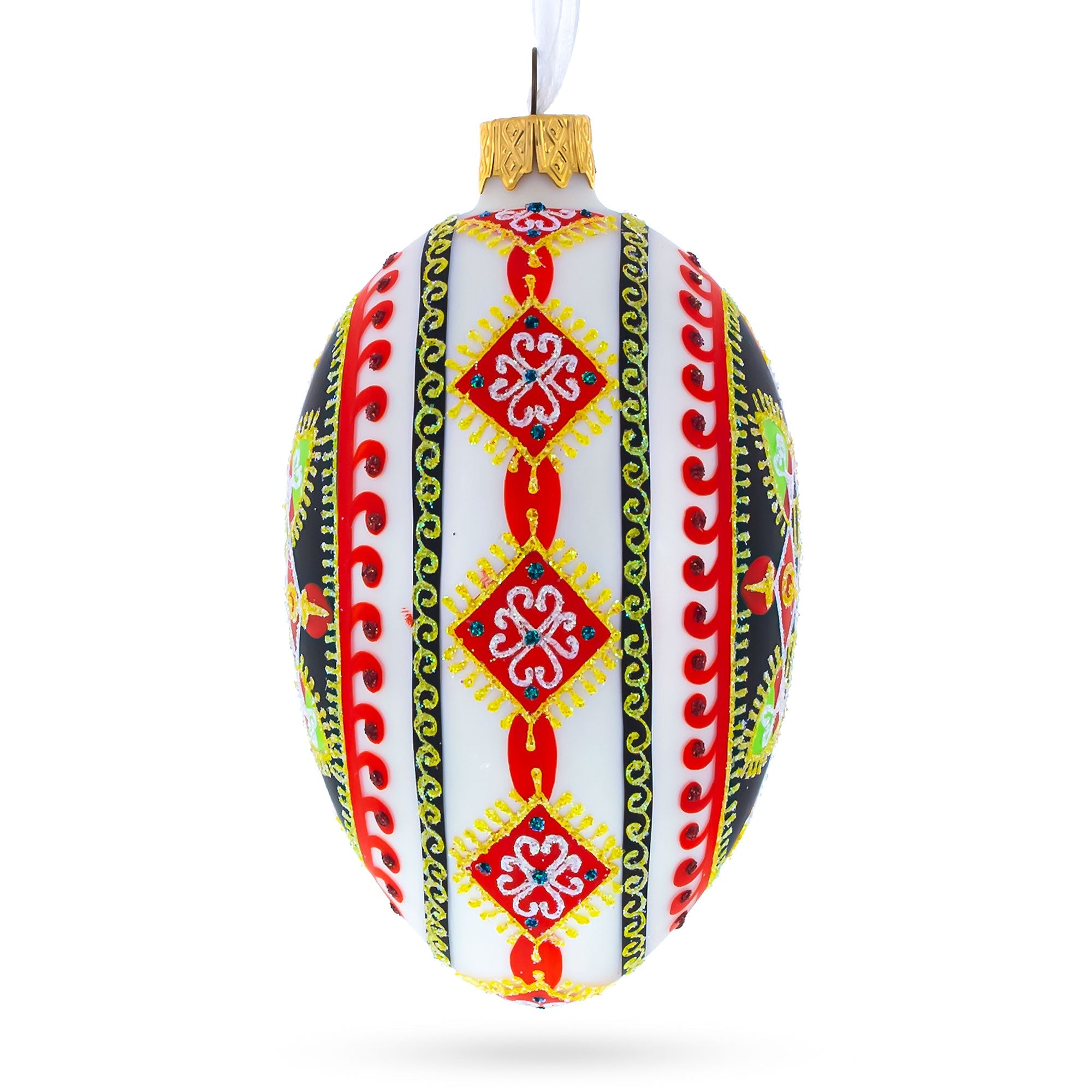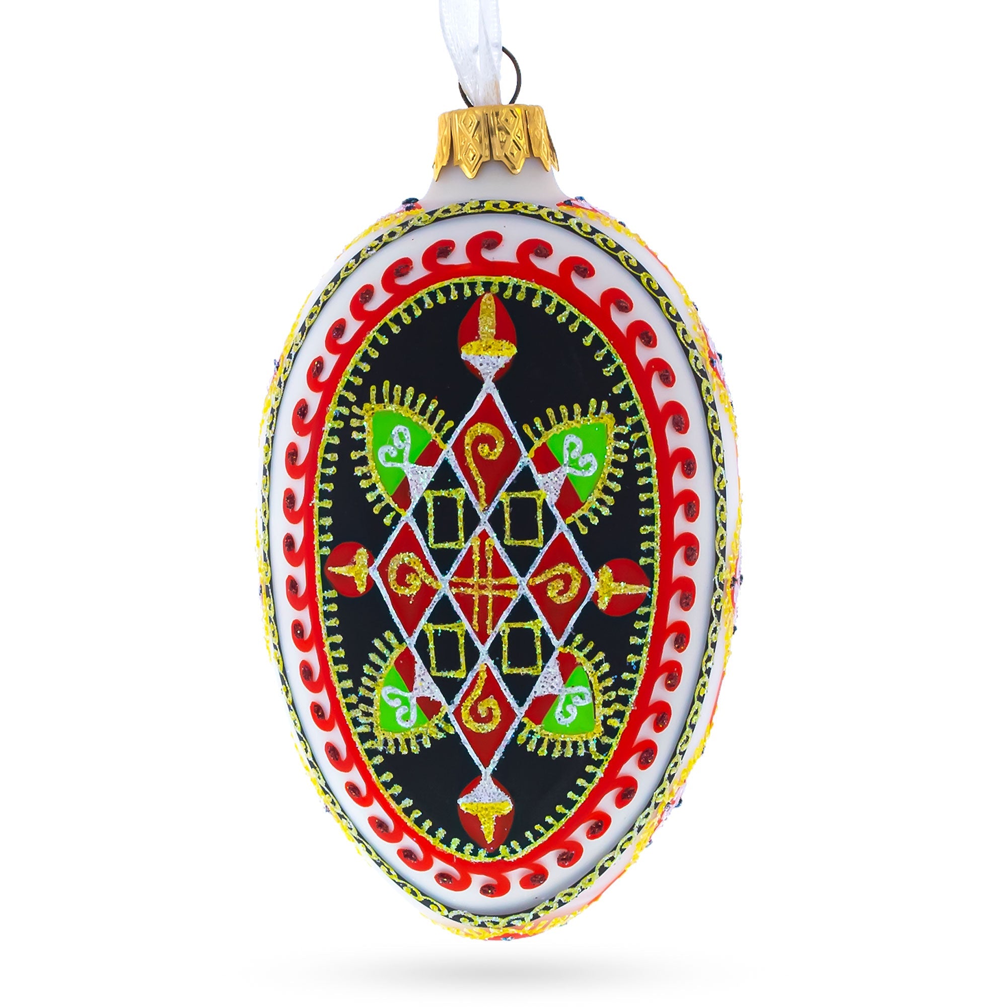 Rhombus Pysanka Glass Egg Ornament 4 Inches