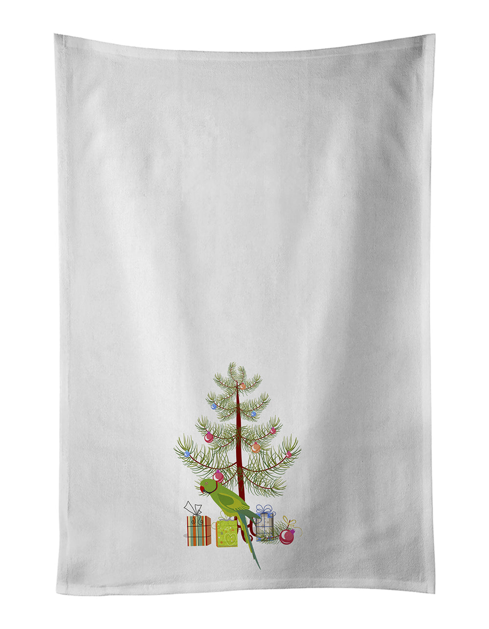 Decorate your space with our Christmas Ring-Necked Parakeet artwork on a Kitchen Cotton Towels. Spruce up your kitchen decor with Caroline's Treasures Decorative White Kitchen Towel Set. This set of two dish towels showcases beautiful artwork from one of our talented artists, making them both practical and visually appealing. These towels are crafted from 100% cotton, offering excellent absorbency and durability, making them ideal for any kitchen task. Each white towel measures 19 inches by 28 inches, providing ample coverage for drying dishes or wiping up spills. The standout feature of these towels is the full-color artwork design printed on each one. They can serve as a vibrant accent in your kitchen, turning a functional item into a delightful piece of decor. When it comes to care, these towels are machine washable in cold water and can be dried on low heat. Remember to always use a pressing cloth when pressing the design, and avoid using bleach on the decorated towel. The Decorative White Kitchen Towel Set makes a great gift or a stylish addition to your own kitchen.