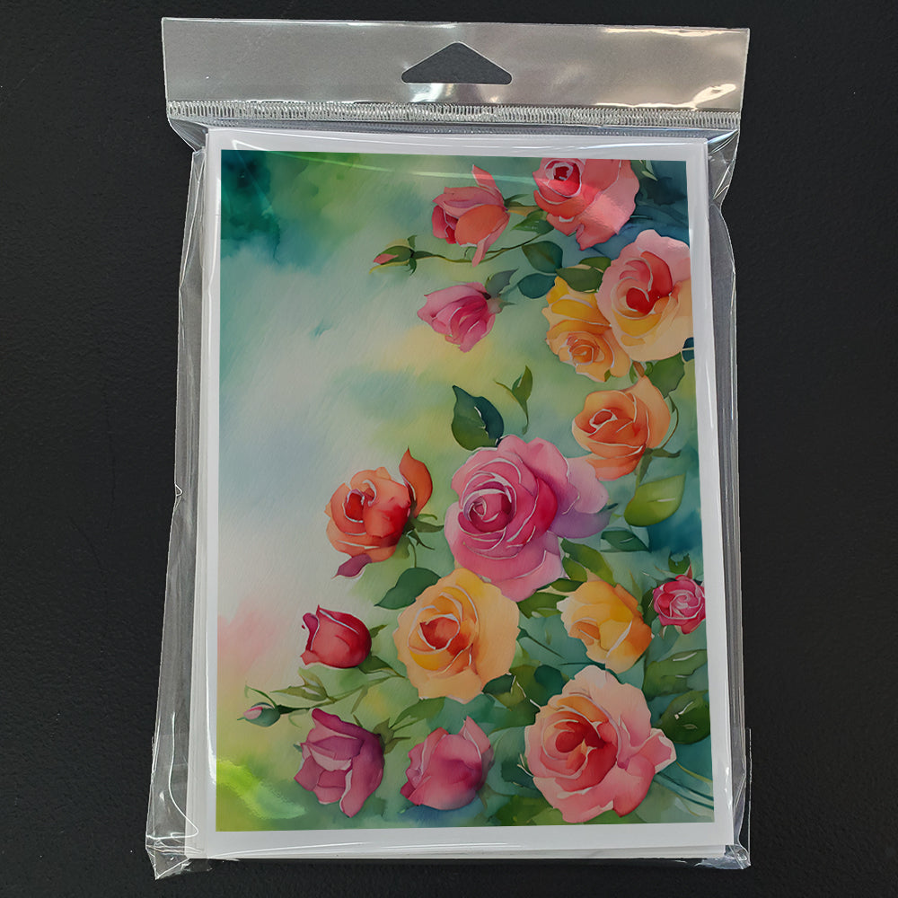 Decorate your space with our Roses artwork on a . Celebrate special moments with Caroline's Treasures Printed Greeting Card Pack. This pack includes eight beautifully folded 5x7 cards, accompanied by eight matching white envelopes. With blank interiors, these cards provide ample space for your personalized messages and heartfelt holiday greetings. Each card features captivating full-color artwork, meticulously printed in our facility on high-quality 80 lb cover stock or 216 GSM. The super smooth finish of the white cards enhances the visual impact of the artwork, creating a truly stunning presentation. Designed by our talented in-house artists or licensed artists, the artwork on these cards showcases their creativity and attention to detail. From vibrant illustrations to captivating designs, each card tells its own unique story. Whether it's for birthdays, anniversaries, holidays, or any special occasion, Caroline's Treasures Greeting Card Pack is the perfect way to convey your heartfelt sentiments. Share joy, love, and warm wishes with these exquisite cards and make every moment unforgettable.