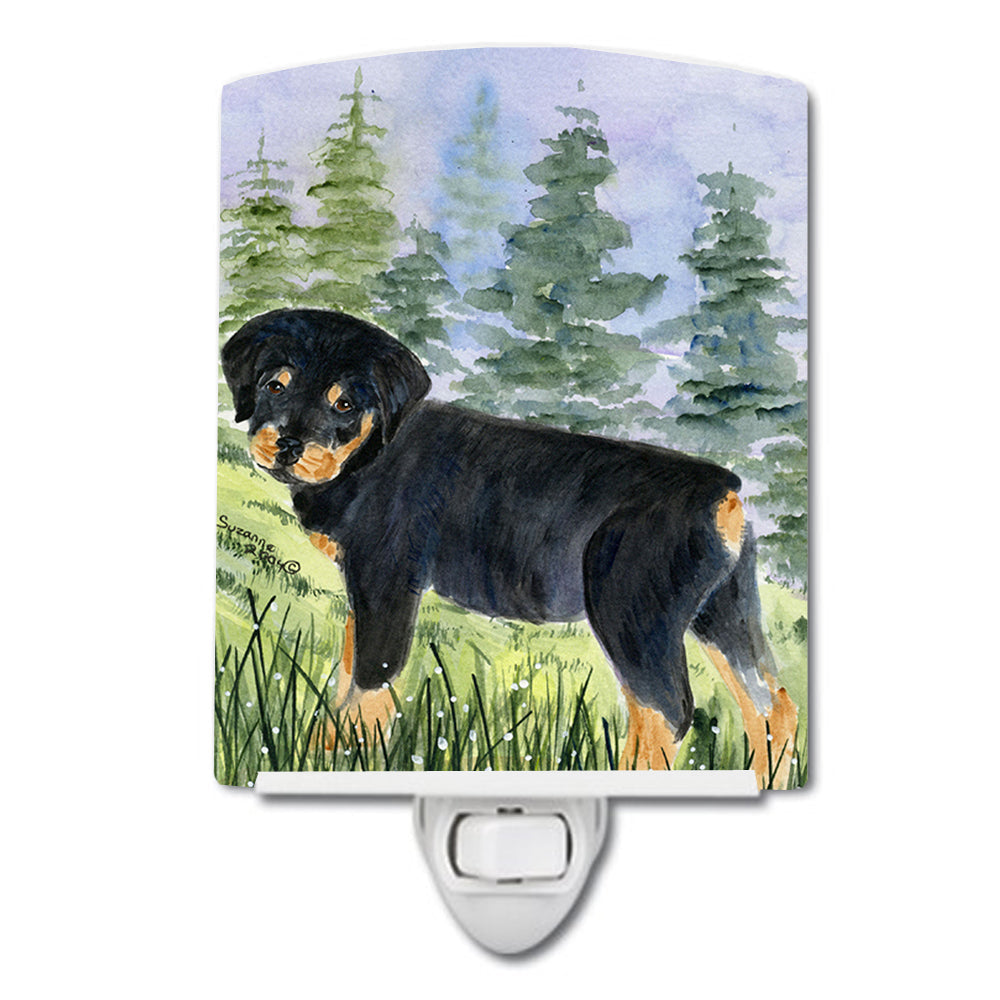 Decorate your space with our Rottweiler artwork on a Night Light. Introduce a splash of artistic flair and subtle illumination to your space with the Decorative Ceramic Night Light from Caroline's Treasures. Perfect for any room, this night light seamlessly blends functionality with an aesthetic appeal, offering a stylish solution to brighten up dark corners of your home or office. Boasting a six-inch high by four-inch wide ceramic tile at the front, it showcases vivid, full-color artwork from distinguished artists, transforming a simple utility into a vibrant art piece. The artwork is securely encased in a robust metal holder, ensuring durability and longevity. Two screws are provided to firmly affix the tile into the holder. The holder extends three inches deep, housing an included bulb that emits a soft, welcoming glow. This product meets all safety standards, as evidenced by its UL approval. Proudly made in the United States from imported components, this Decorative Ceramic Night Light is not just a functional device; it's a statement piece that enhances the ambiance of your surroundings.