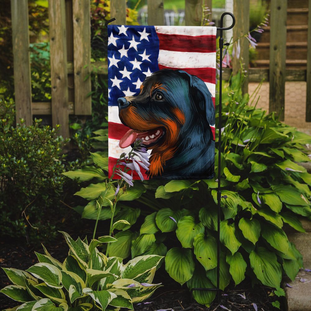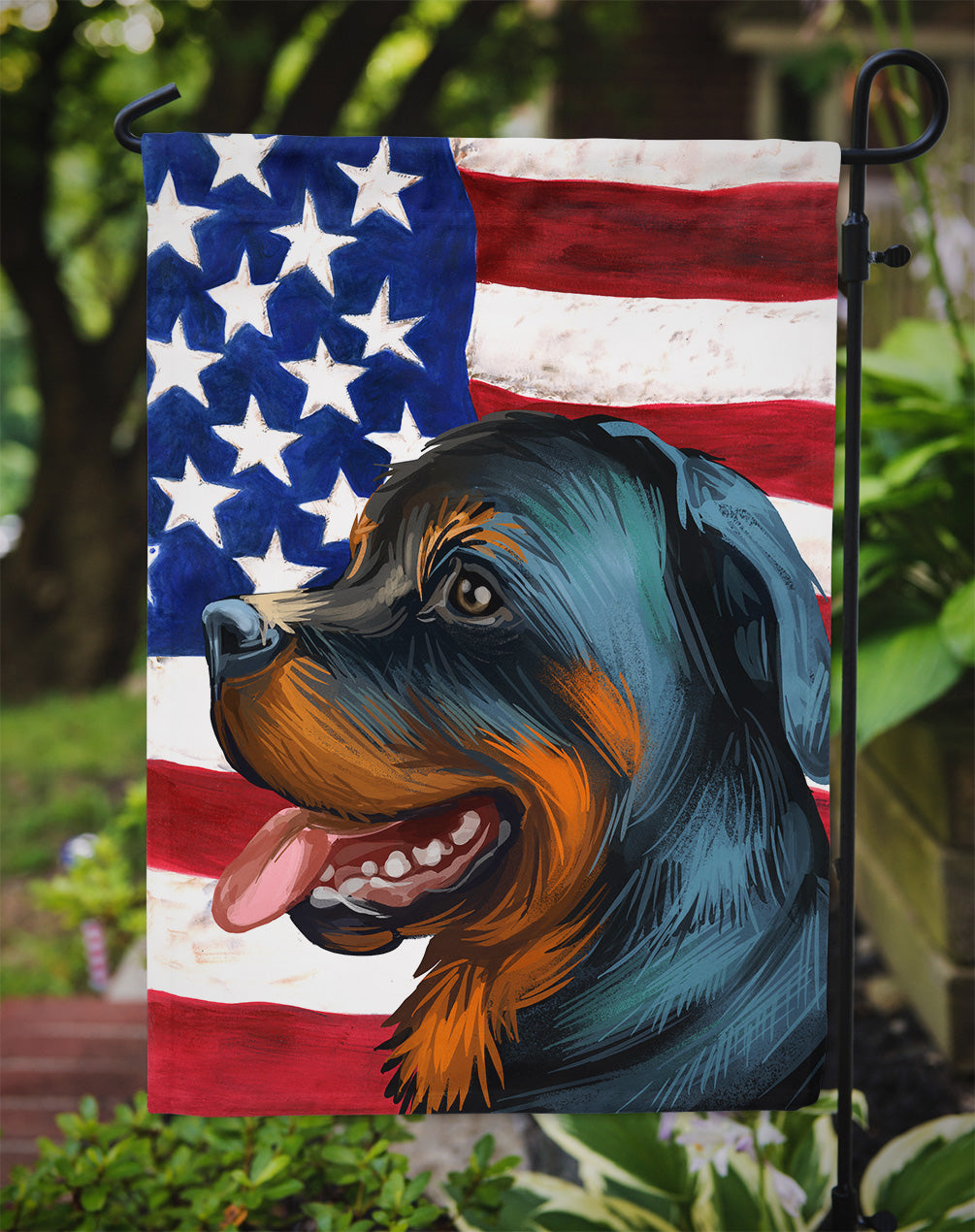 Decorate your space with our Rottweiler artwork on a Garden Flag. Enhance the beauty of your garden, patio, or yard with Caroline's Treasures Decorative Garden Flag, proudly made in the USA. Crafted from two pieces of thick, double-sided polyester fabric, this 2-ply garden flag is designed to withstand various weather conditions, making it water-resistant and weatherproof. Featuring correctly readable words on both sides, this garden flag offers a delightful visual experience from any angle. With its heavier weight, it stands out among other garden flags, ensuring stability and durability even in wind, rain, and snow. Measuring approximately 11 1/4 inches by 15 1/2 inches, this flag allows you to personalize your outdoor decor. It comes with a 1 1/2-inch sleeve sewn in, allowing easy attachment to any standard garden flag stand or garden size porch hanger (sold separately). Make a statement in your outdoor space with Caroline's Treasures Decorative Garden Flag, a vibrant and high-quality flag that adds color and personality to your surroundings. Proudly made in the USA, it's a symbol of quality craftsmanship and attention to detail.